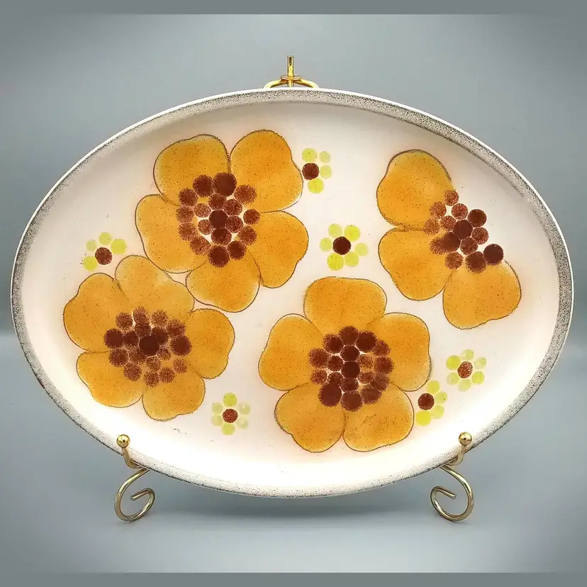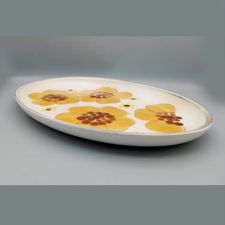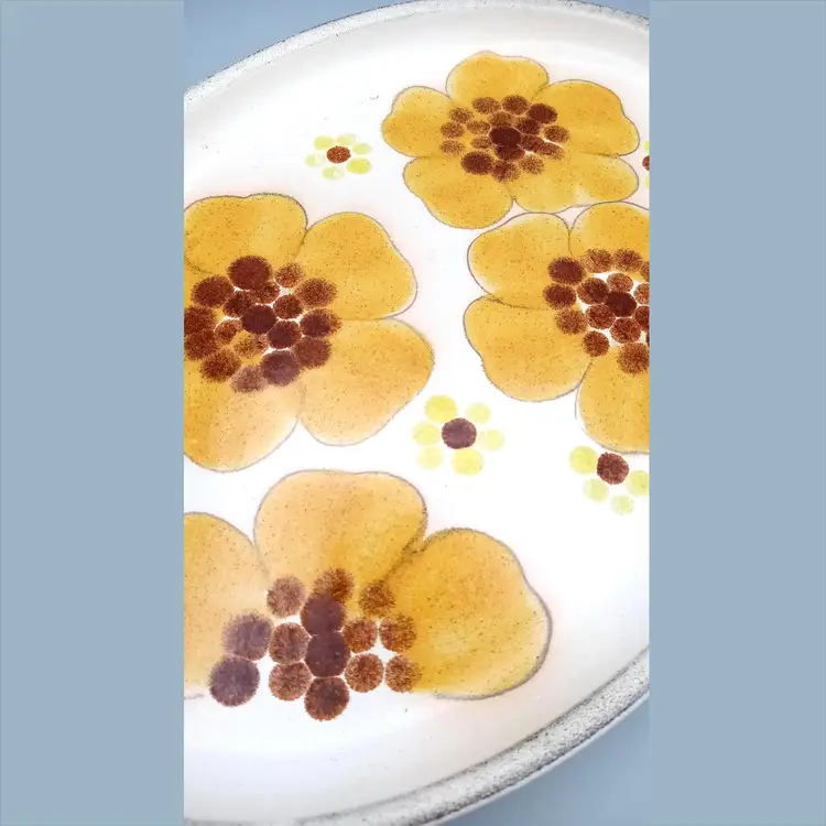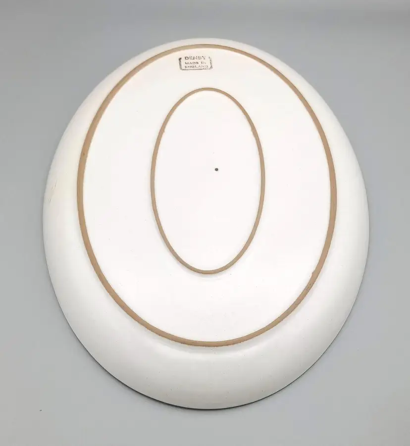 Denby Pottery has been made in England for over 200 years, from the very strong Derbyshire clay. It doesn't have any damage but the glaze has some utensil marks. Pretty minimal for a piece this old. It's definitely still serviceable but would also make a great decorative piece, especially in a boho or vintage setting. Measures nearly 13" long. Please refer to photos for condition and thanks for looking! P.S. I'll be posting more pieces from this collection soon!