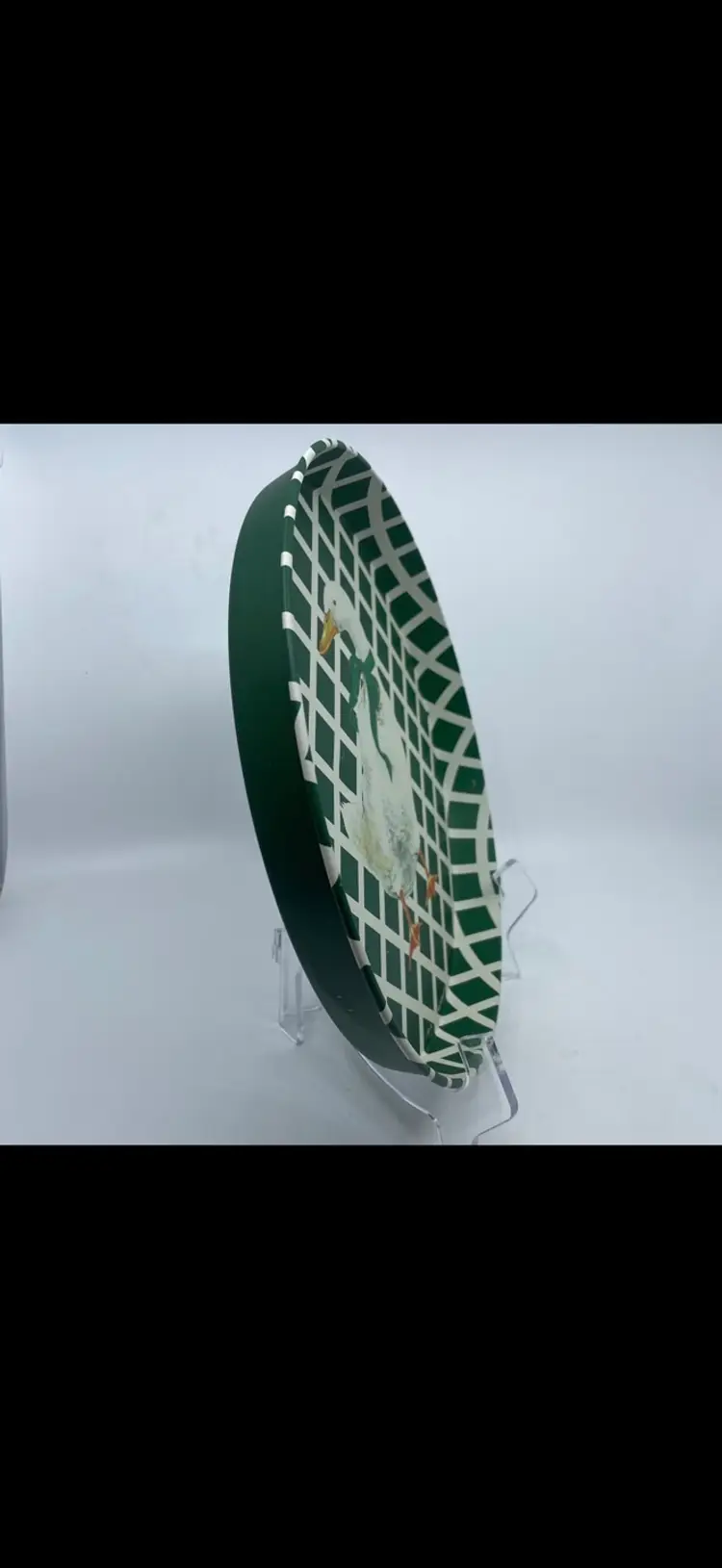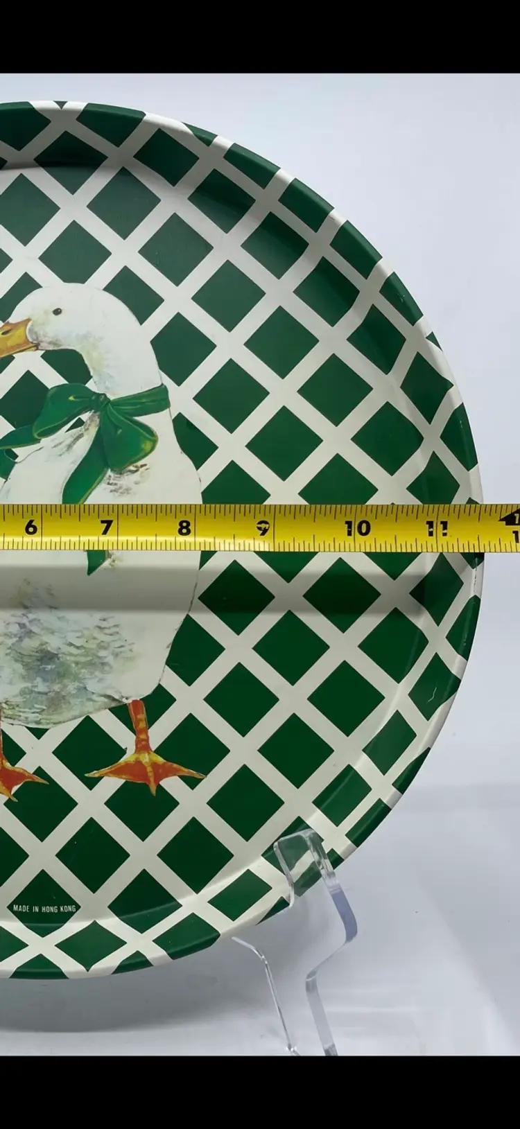 11 1/2” diameter. READ: Small dent that shows on back of tray; hard to see on front. See picture last picture.