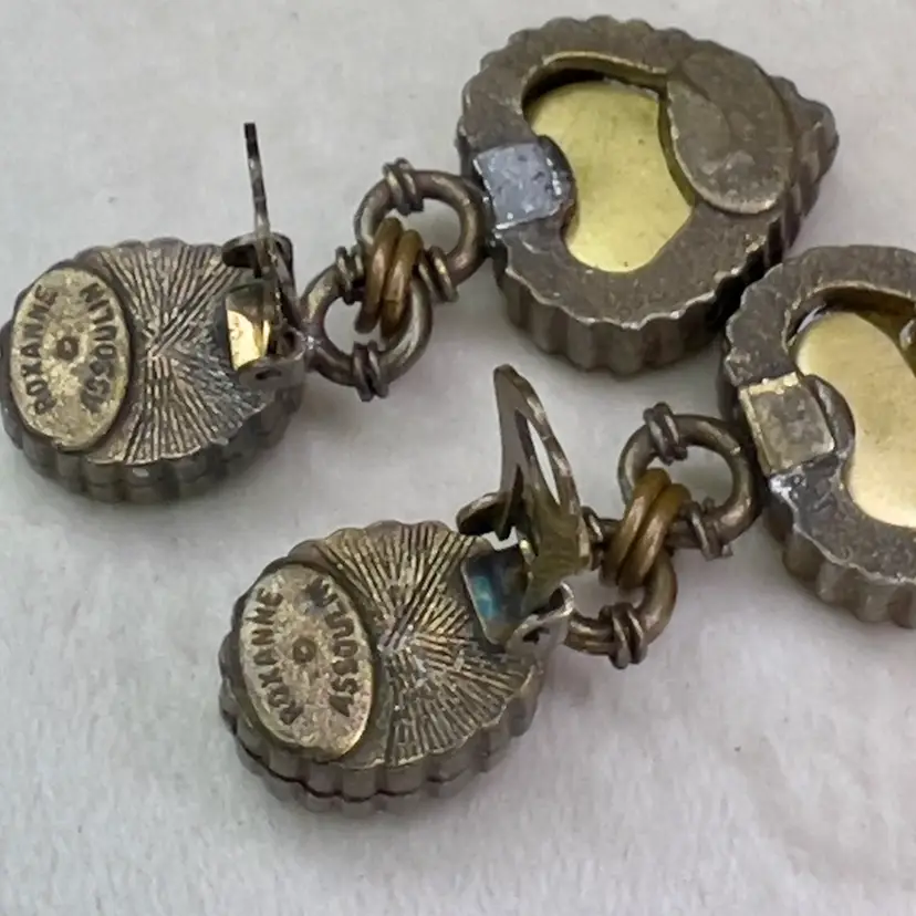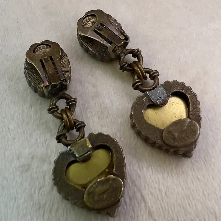 Vintage Roxanne Assoulin Designer Signed Micro Mosaic Heart Clip On Earrings Rare! 1.5”