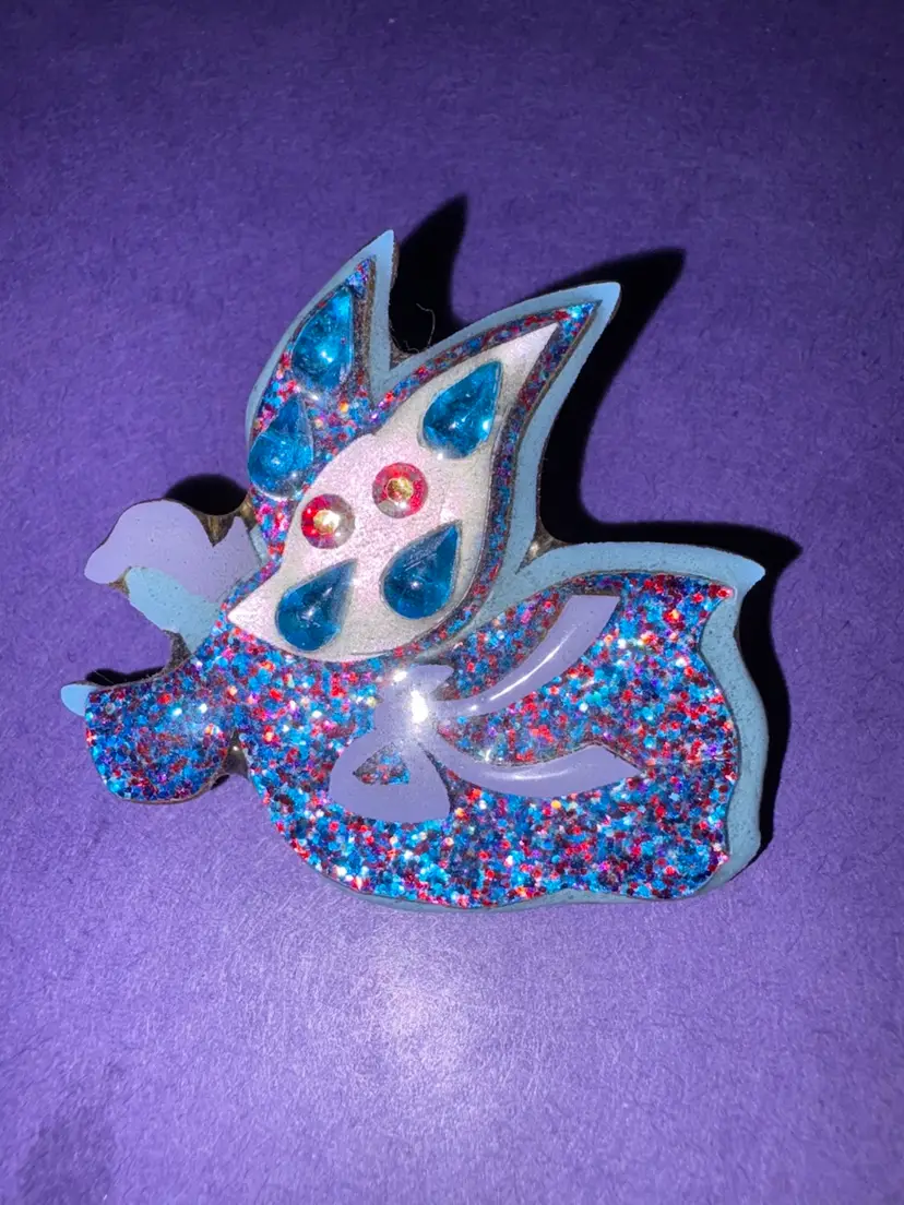 Pin is very detailed and dimensional and is in excellent vintage pre-owned condition. This is a lovely Blue Glittering Angel with blue and clear rhinestones on her wings. Includes ‘Designs by Lucinda’ sticker on back.