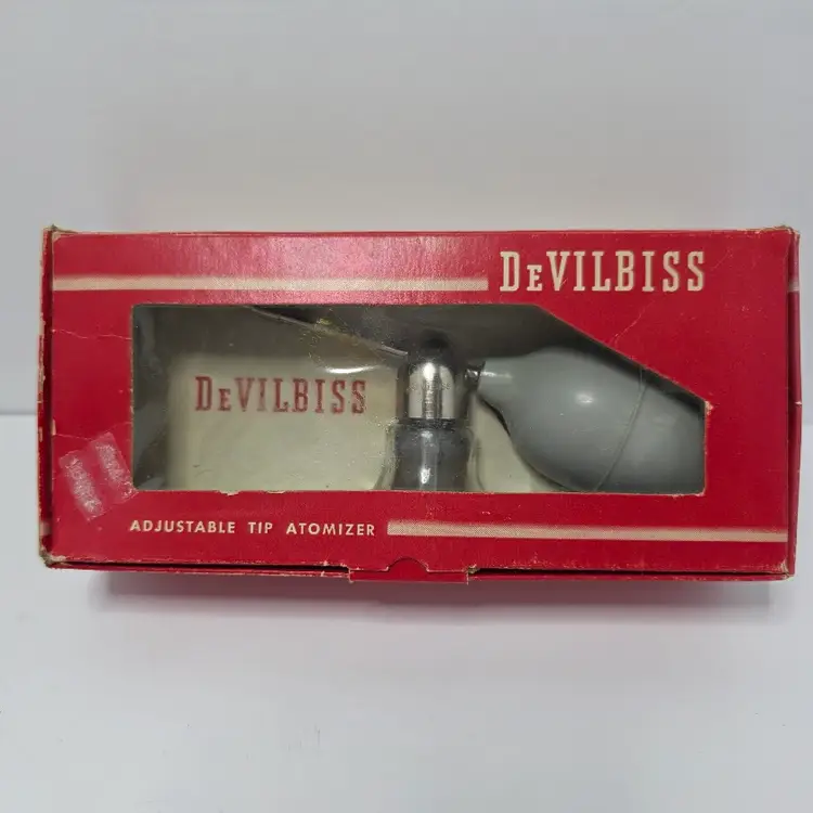 Add a touch of elegance to your vanity with this vintage DeVilbiss glass atomizer. Complete with its original box, this charming piece is perfect for collectors or as a unique gift.