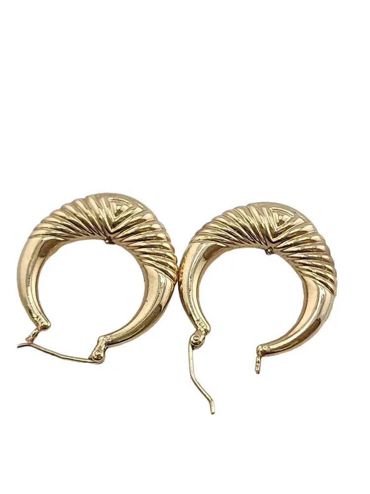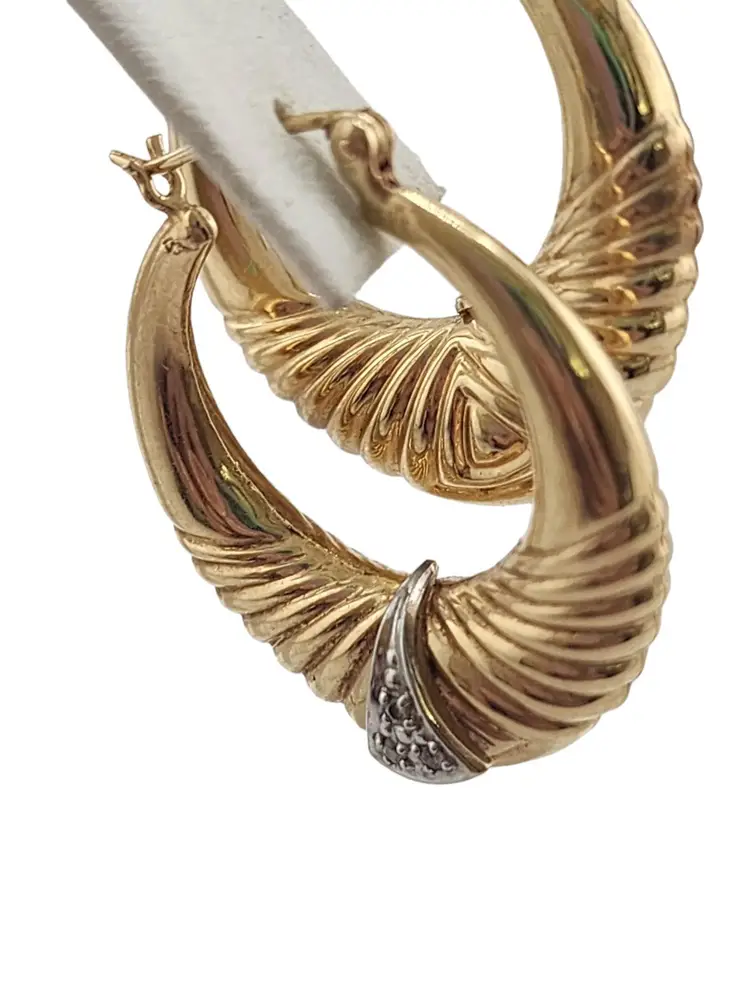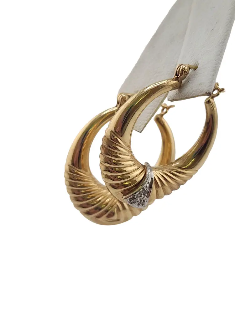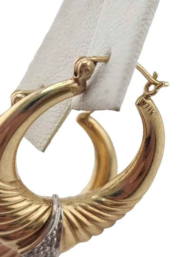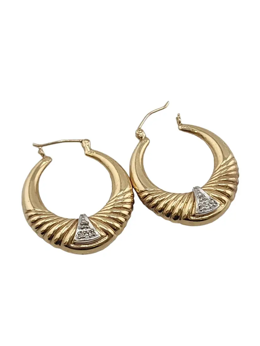 Vintage Diamond and 14kt Gold Textured Hoop Earrings (A6142)