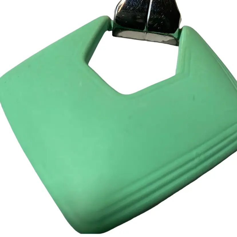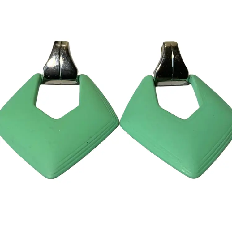 Very shinny and it’s metallic. Has some minimal wear. Approximately 2” long. Please review photo. The earrings are a little less green than what could capture on photos. https://youtube.com/shorts/H5FE_PvmjI4?feature=shared