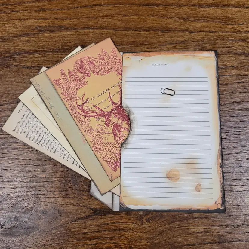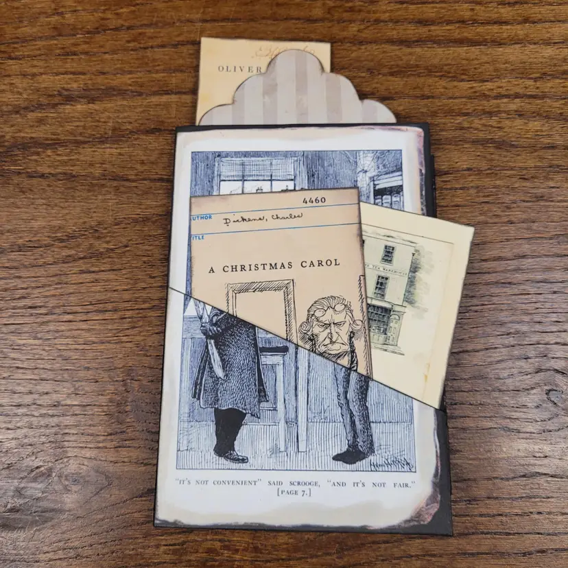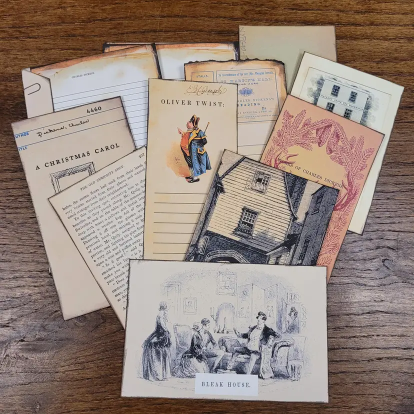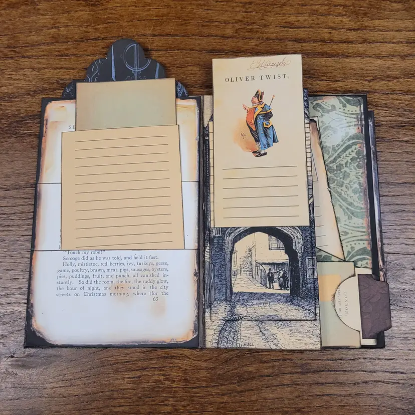 Dive into the world of Charles Dickens with this vintage-themed folio. Featuring classic illustrations and snipets from 'Oliver Twist,' 'A Christmas Carol,' and 'The Old Curiosity Shop.' This journal folio is perfect for literature lovers and vintage decor enthusiasts. Ideal for journaling, scrapbooking, or as a unique gift.
