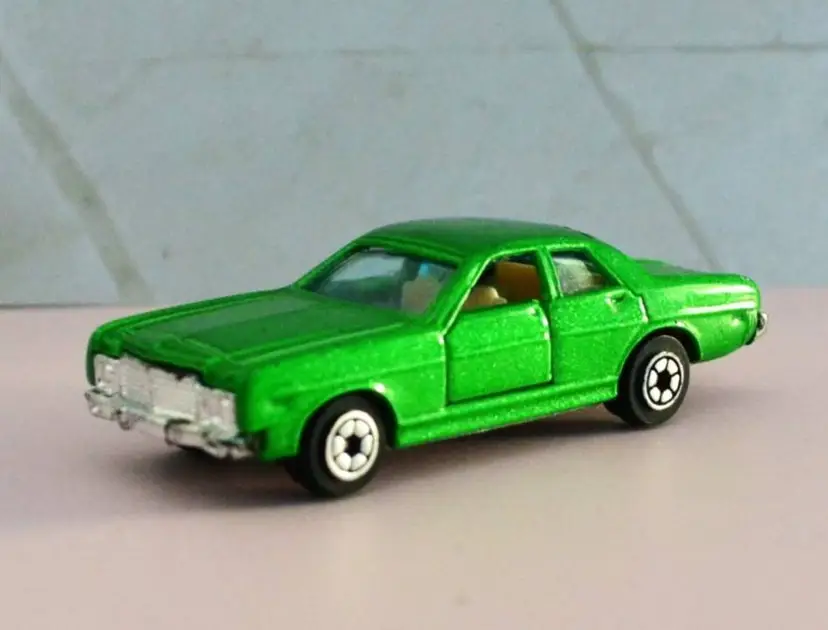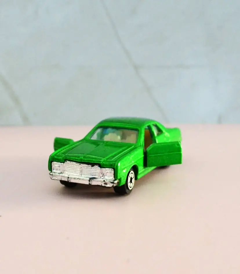 This car was made by Yatming in Hong Kong late 1970s to 1980s. Part of their 800 series, scale is 1:64. Baseplate number 1054. 4 door model, the front doors will open.