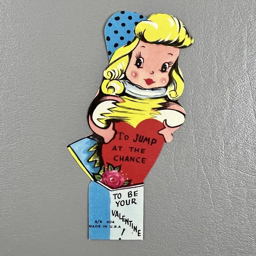 Vintage Die Cut Valentine Blonde Girl Jack In The Box USA Jump At The Chance 4.5"