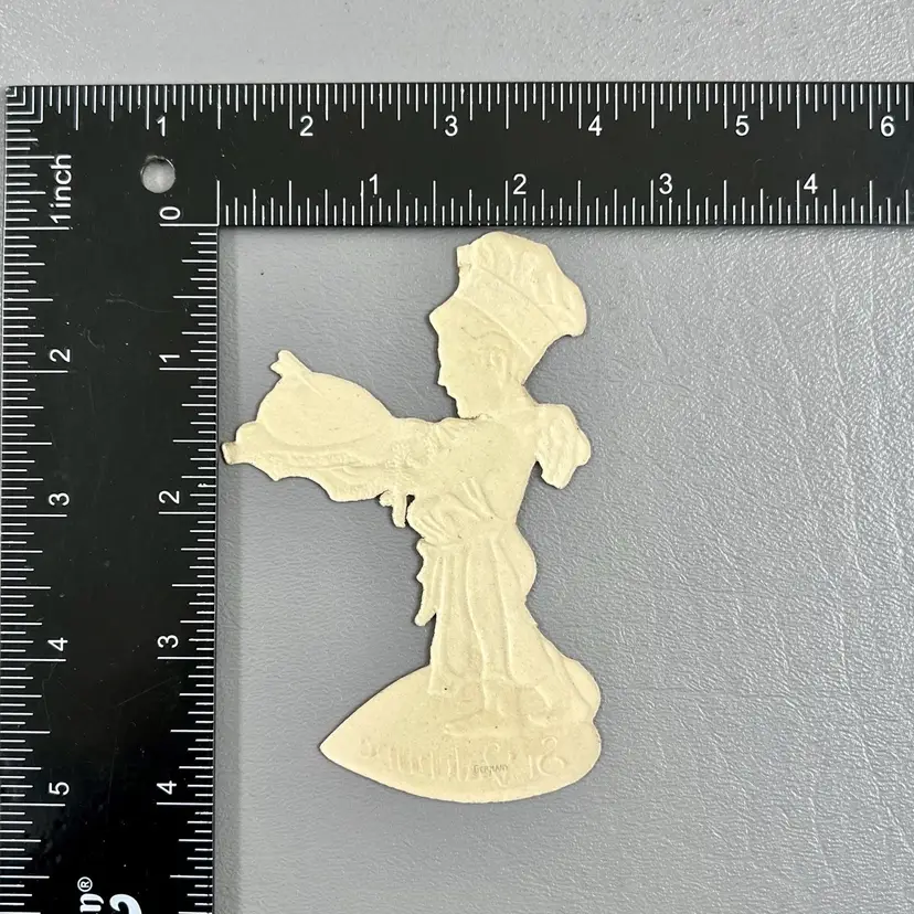 Vintage Die Cut Valentine Greeting Card St Valentine Cupid Serving Heart Embossed 3.75"