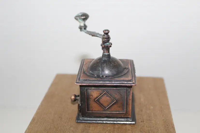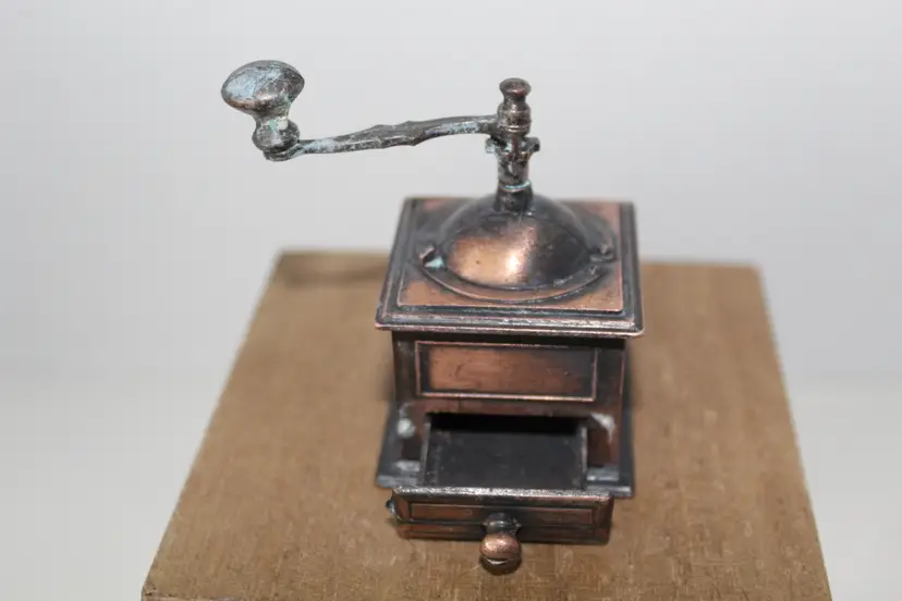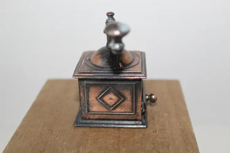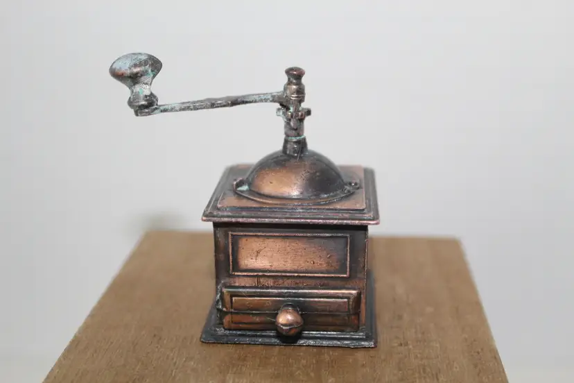 This vintage die-cast metal bronze coffee grinder collectible pencil sharpener is a unique and functional addition to any desktop or trinket shelf. Made in Hong Kong, this vintage pencil sharpener features intricate brass and bronze accents, adding a touch of retro charm to your workspace. With its vintage appeal and practical use, this piece is sure to be a conversation starter and a cherished collectible for any pen and writing instrument enthusiast.