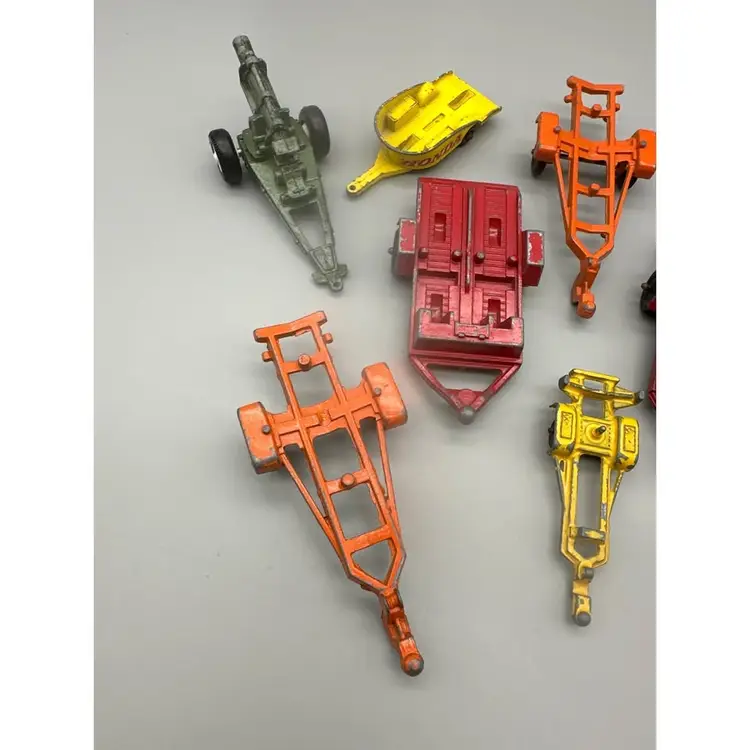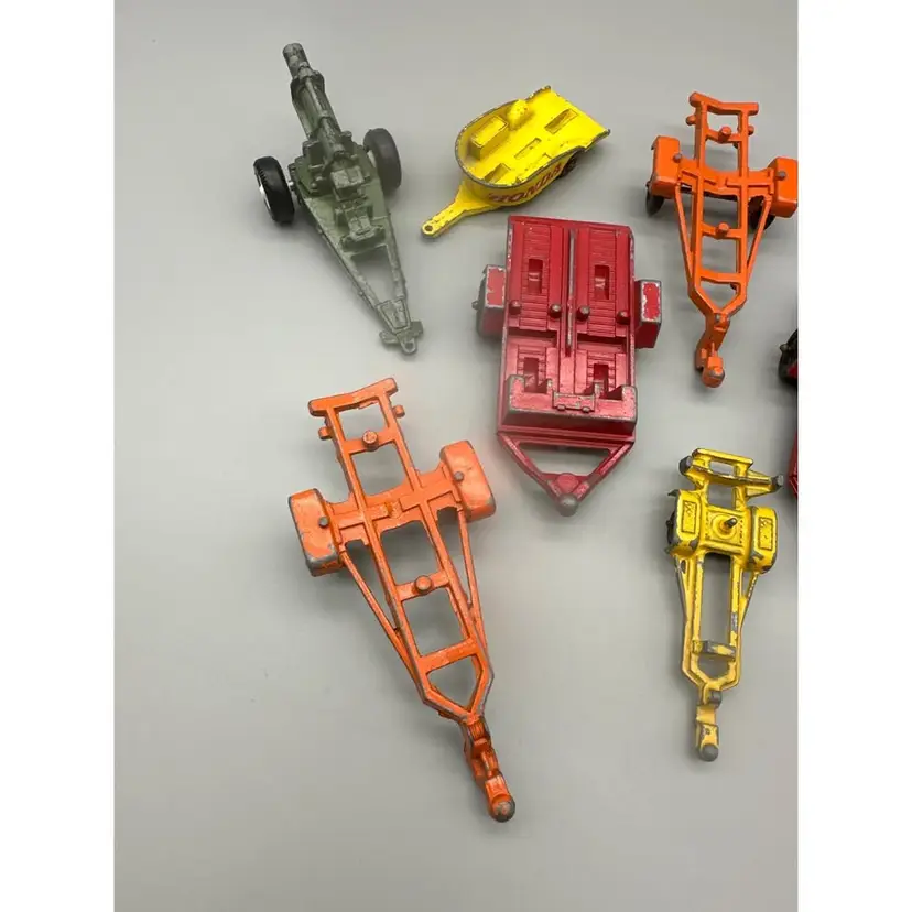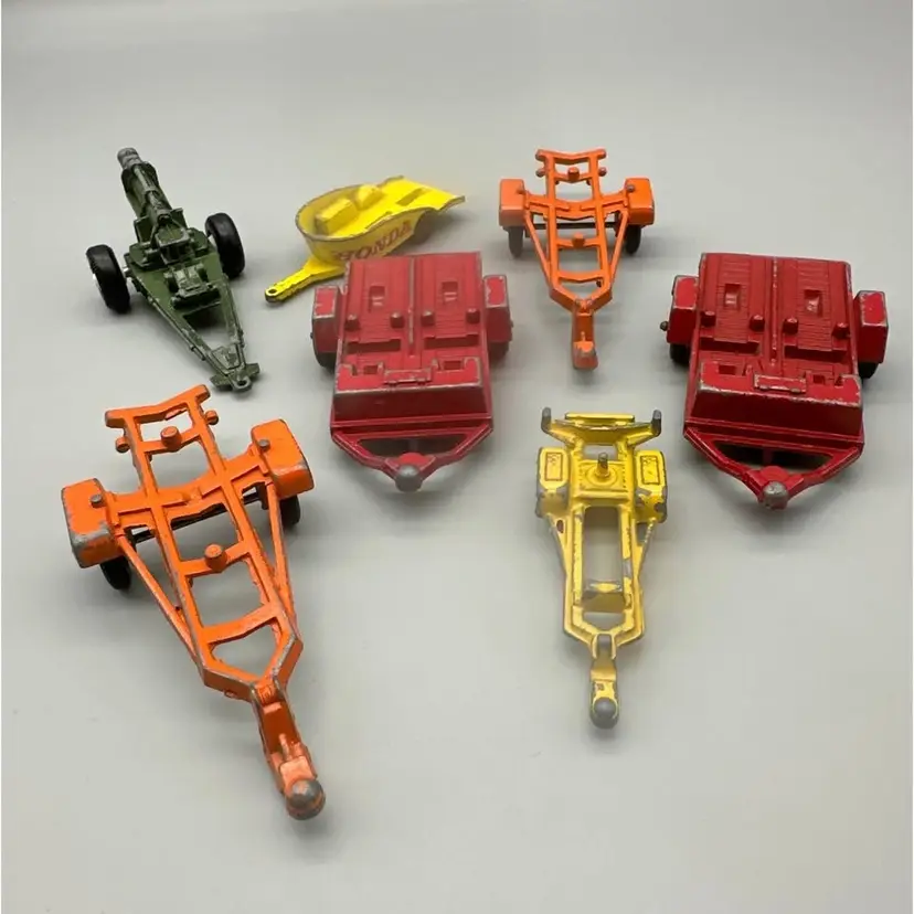 • Includes 6 Tootsie Toy Trailer of which one is a Military Howitzer and a Matchbox Lesney Honda Motorcycle Trailer