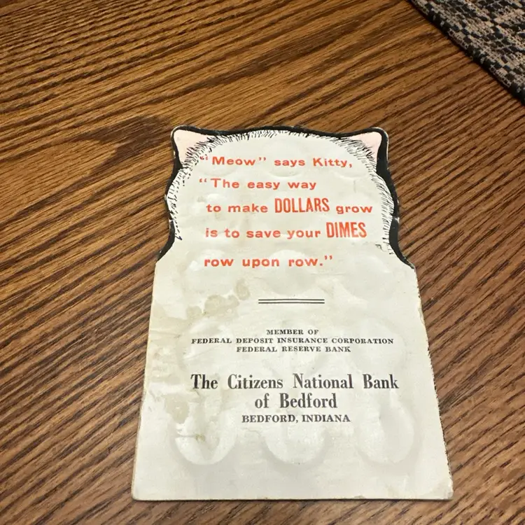 Vintage Dime Kitty, The Citizens National Bank Of Bedford, Indiana, Full Of Dimes 1970’s