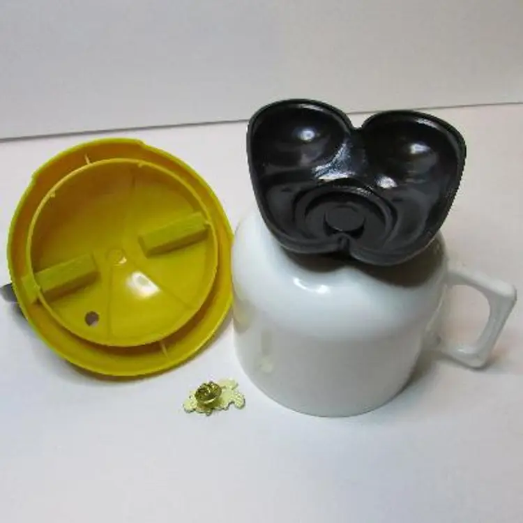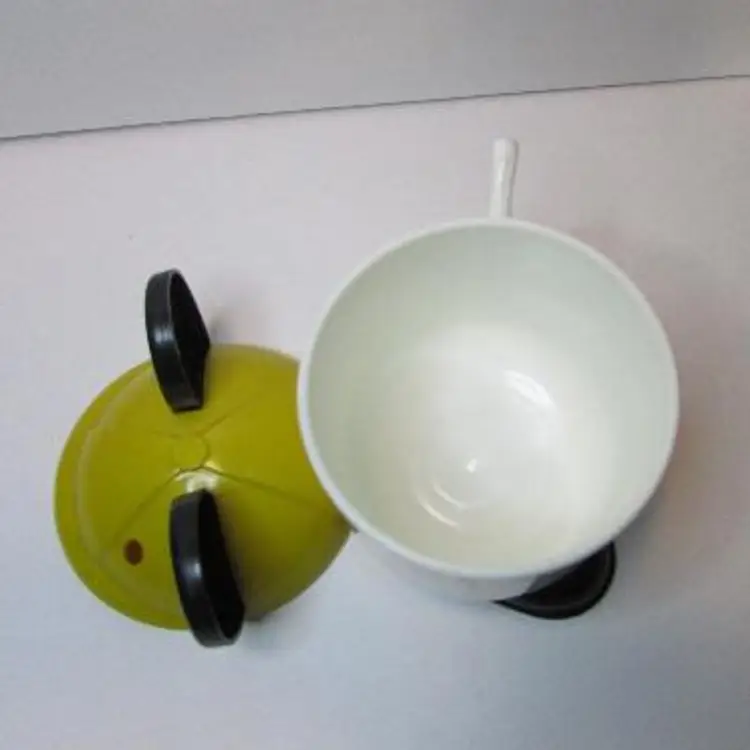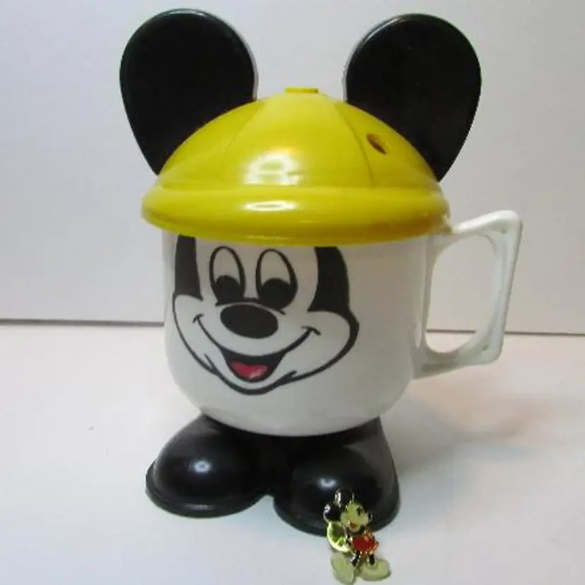 This adorable set has some wear, the pin seems a little foggy, but still a nice set to use and display. The cup is about 5" tall with lid. This is shipped from a smoke free home. Thanks for looking! locub34-23