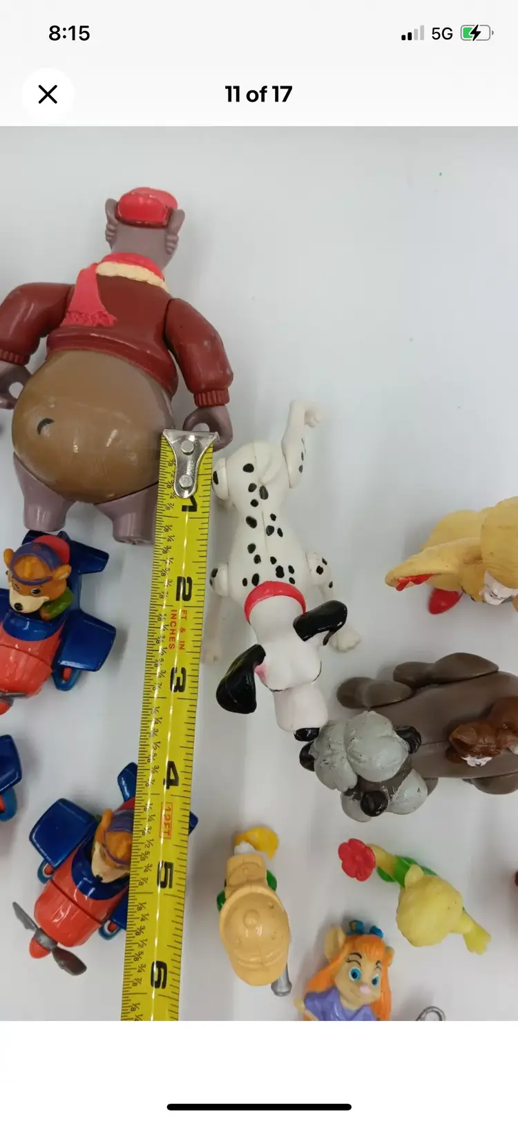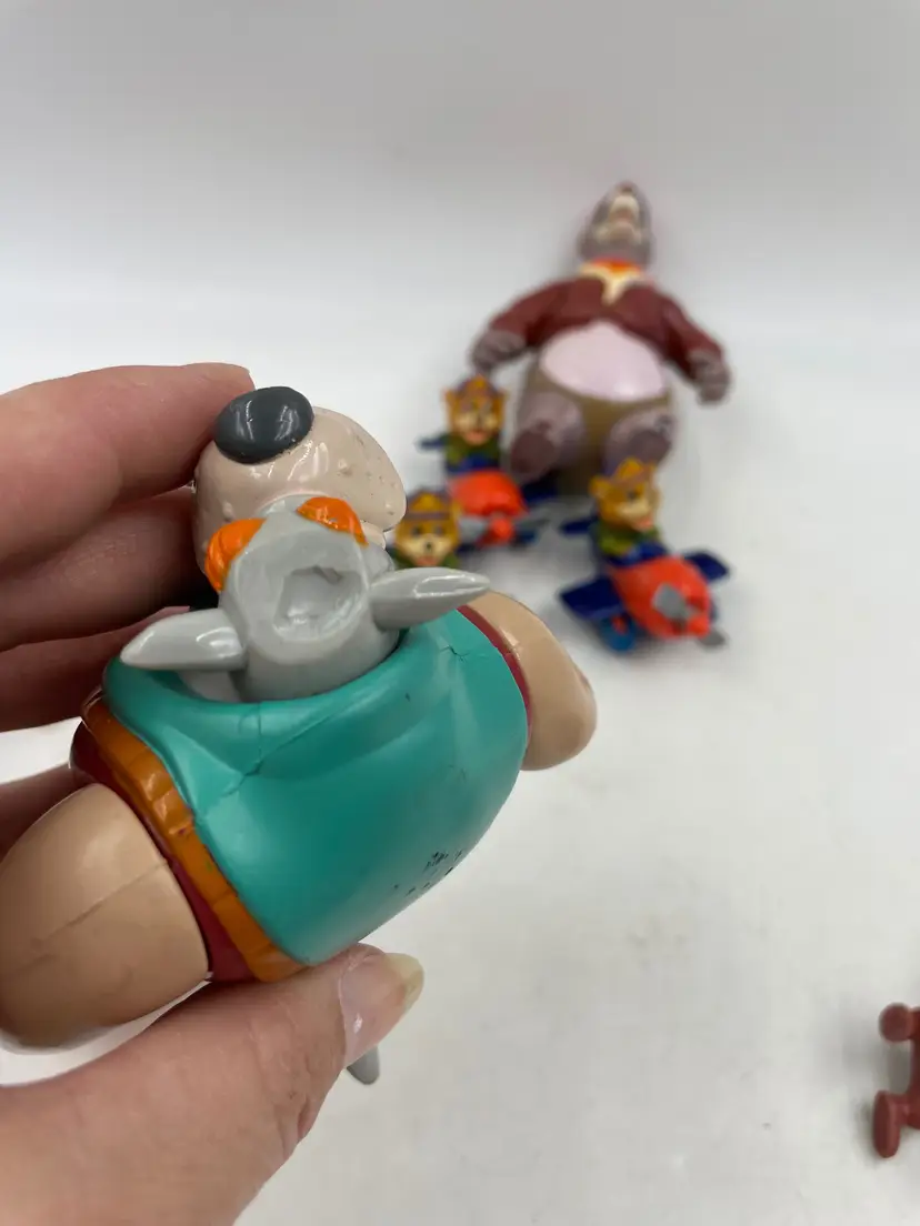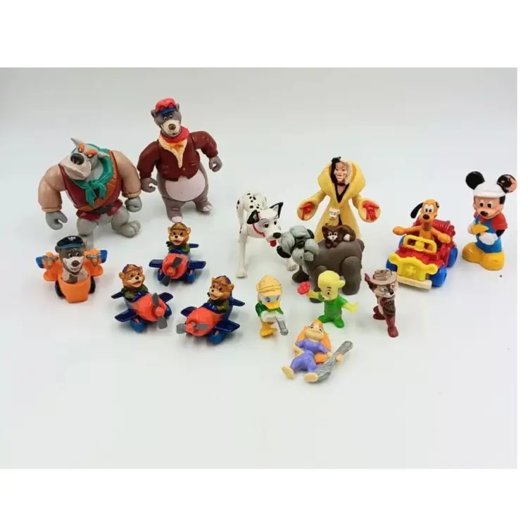 This vintage Disney figurine toy collection features characters from popular shows like 101 Dalmatians, Talespin, Rescue Rangers, and Mickey Mouse. Each figure is made from a mix of materials including PVC, plastic, vinyl, and recycled materials. The collection would make a great addition to any Disney fan's collection, or a fun gift for a child who loves these classic shows. Don't miss out on the chance to own a piece of Disney history!