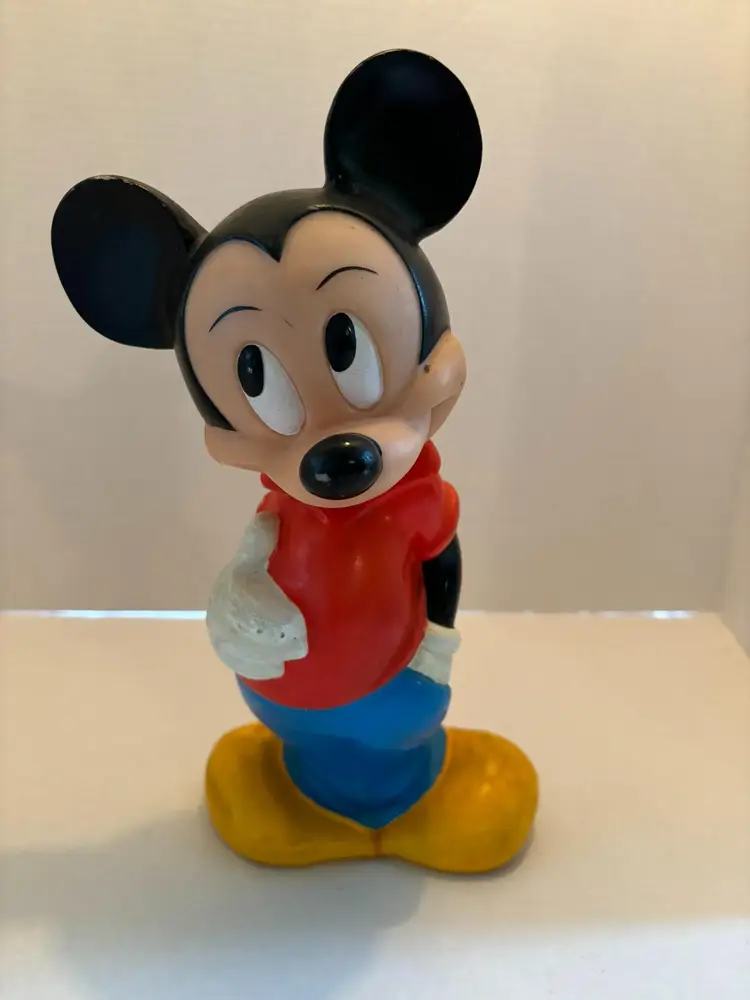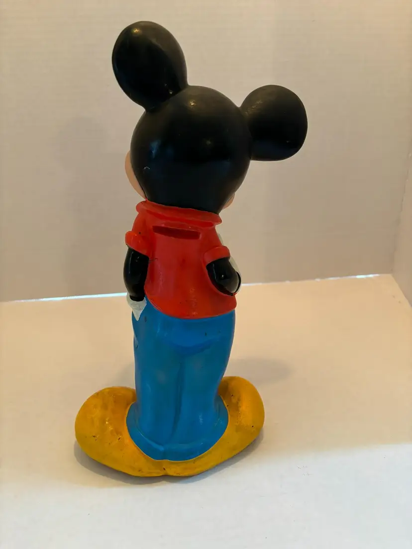 This vintage adorable, lovable character of MIckey Mouse will bring back memories of saving money. From the 1970s, the bank measures 11 3/4in tall X 5 1/2in wide.