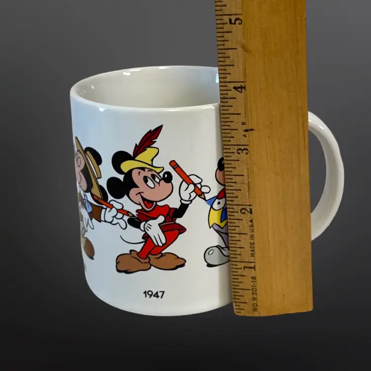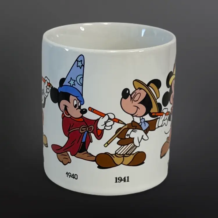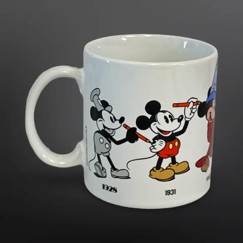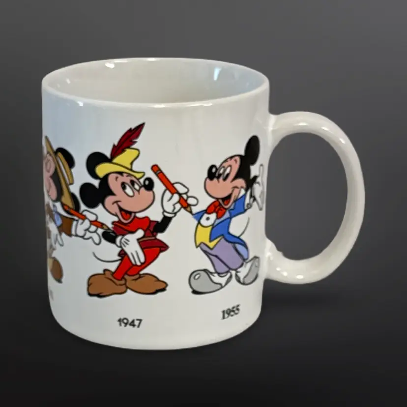Vintage Walt Disney Mugs Ceramic Cup Applause Mickey Mouse Mug Through The Years. In good vintage condition; no chips or cracks. Measures approximately 3.5” T 4.5” W