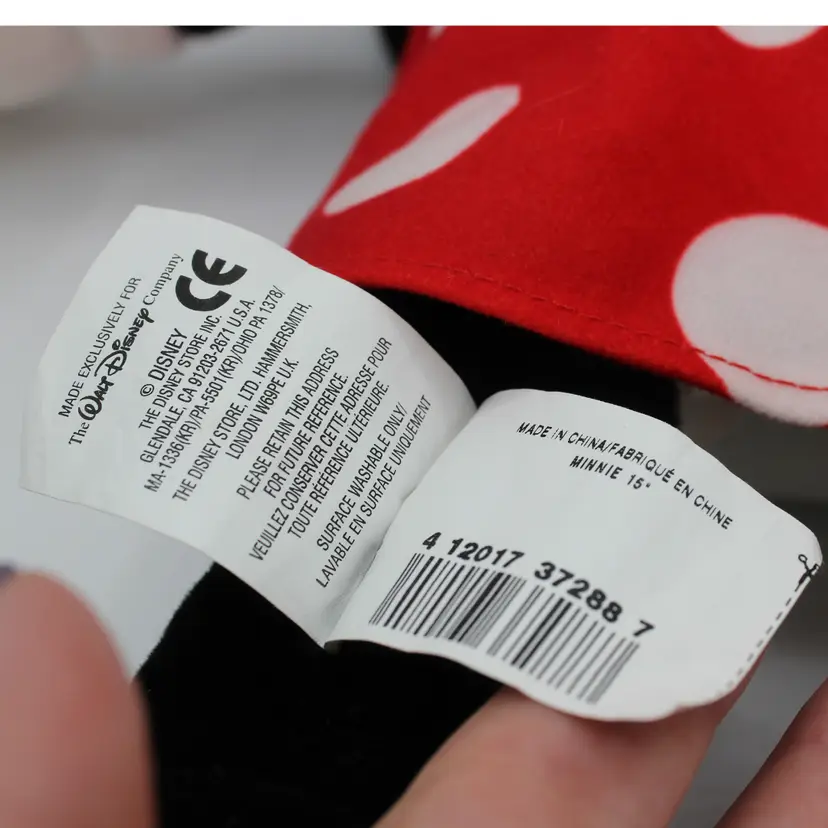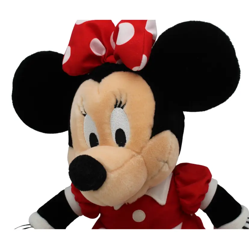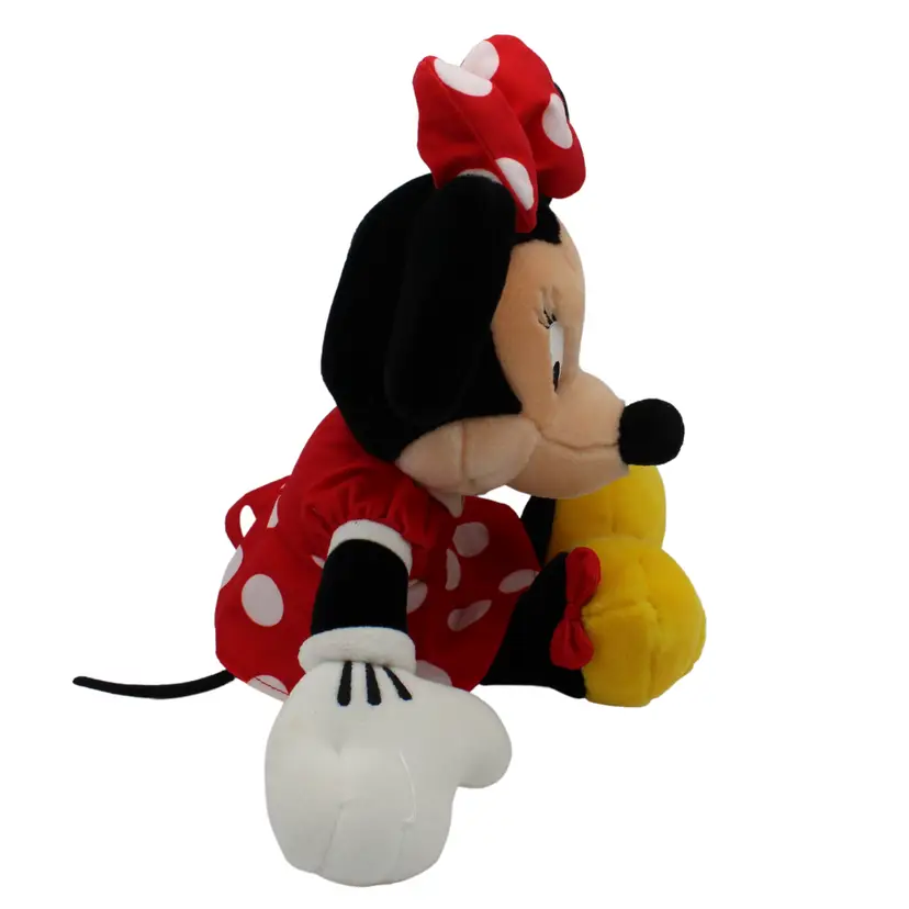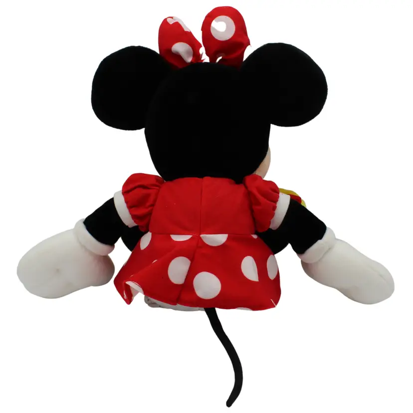 This adorable vintage Minnie Mouse plush is from the 1990s and was sold by the Disney Store. She's approximately 15 inches tall and features her classic look.