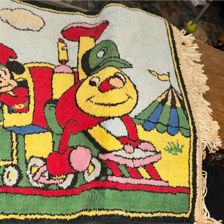 35 x 21. Overall, in pretty good vintage condition. On the upper left, there’s a little bit of a fade out area. No holes. Super cute! Please look at all the photos because that’s part of the description