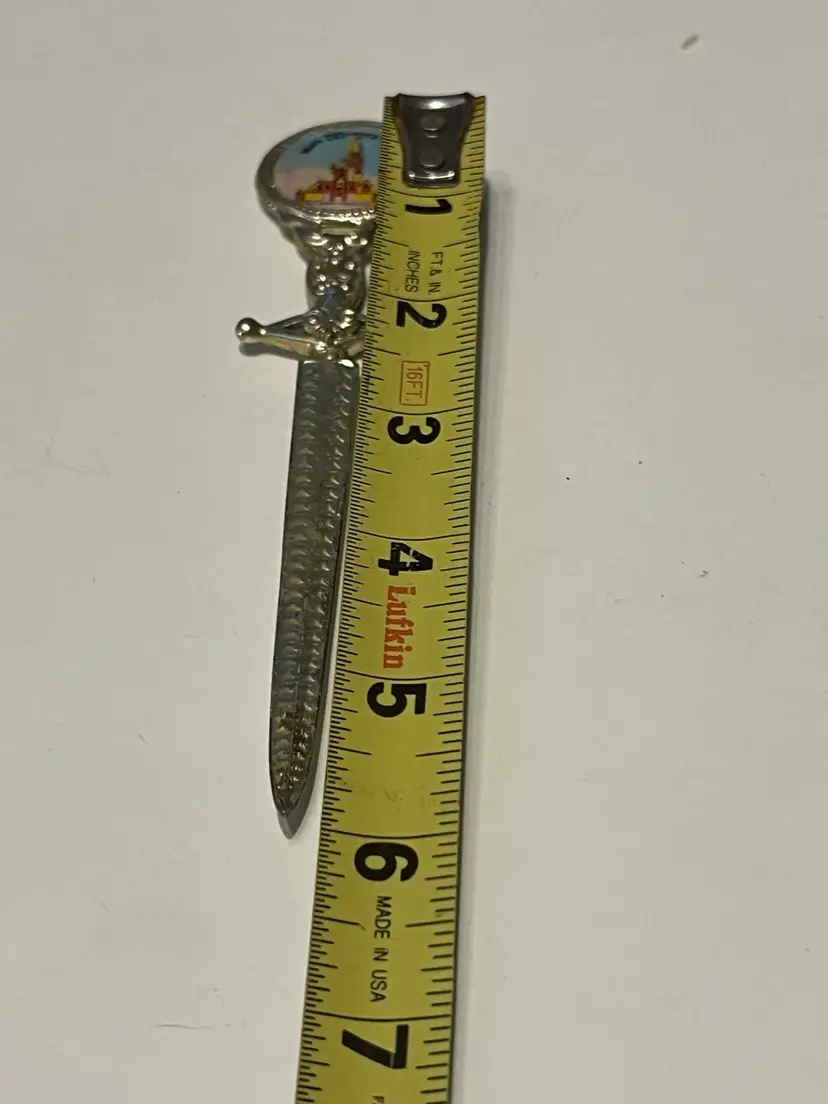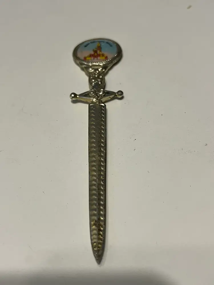 This vintage Disney World letter opener is a must-have for any Disney fan. With a sword design, it's a unique souvenir from Walt Disney World that will make a great addition to your collection. The item features a classic Cinderella’s Castle design, making it a perfect collectible item for anyone who loves the franchise.