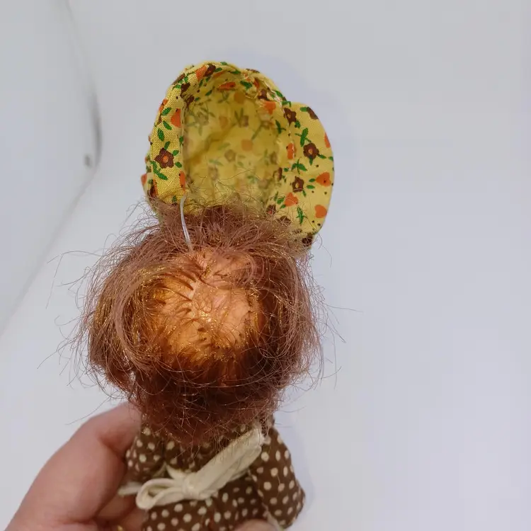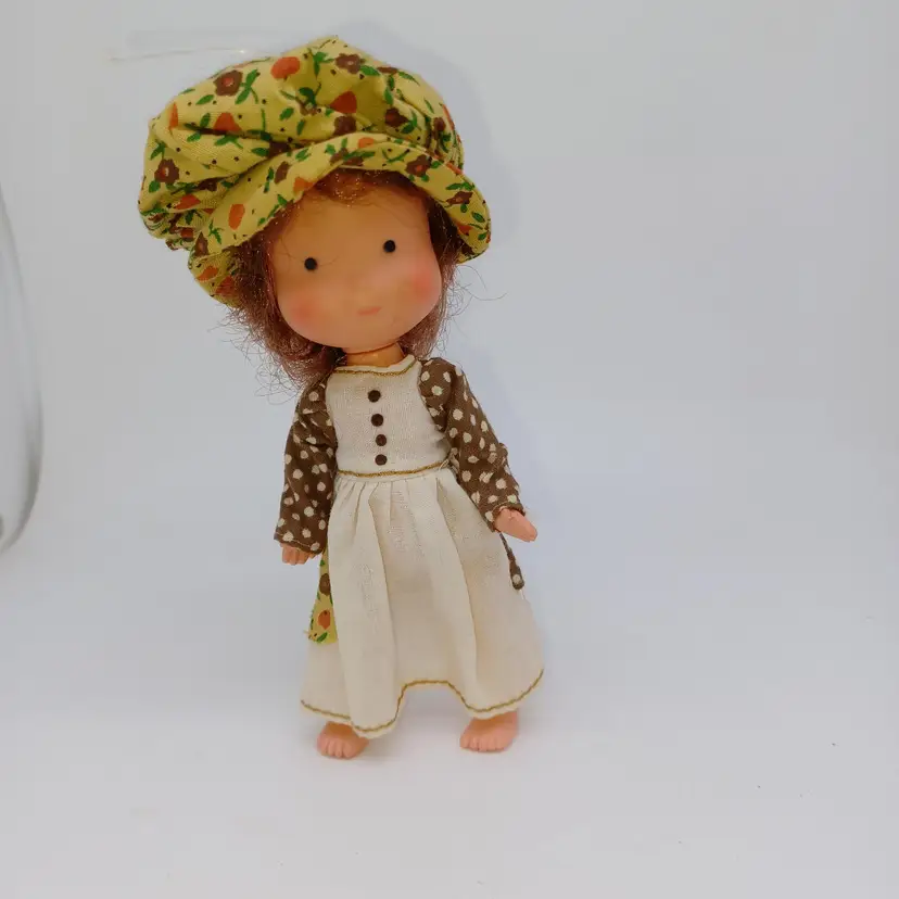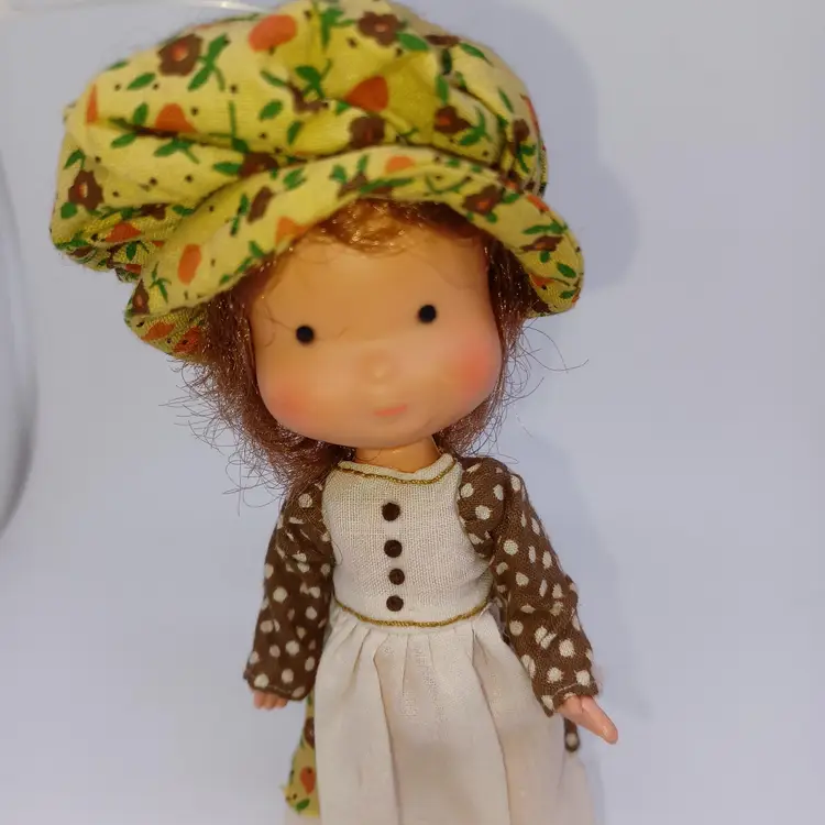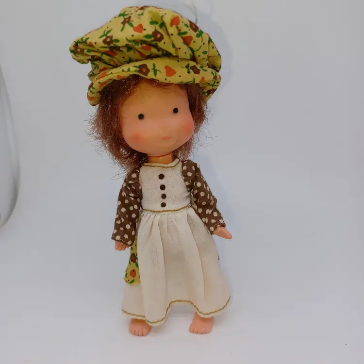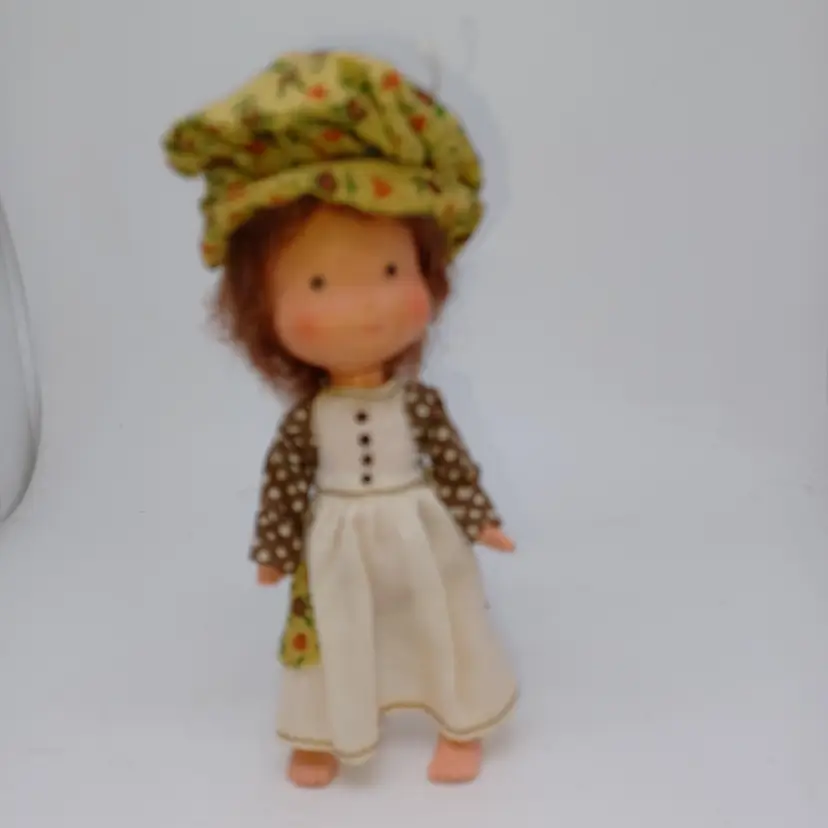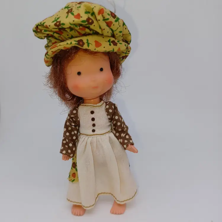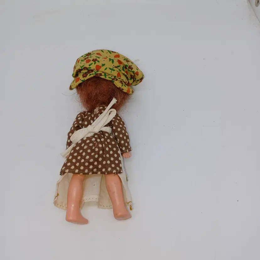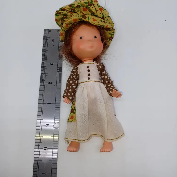 Rare Holly Hobbie dollI think this is Carrie she is vinyl, fully jointed, she has short dark brown hair. Marked KTC 1975 (knickerbocker toy company) Lovely doll in great condition, she's got her original dress and hat, Hat has never been removed still attached with original toggle I showed the back of her head to show how they designed her with not very much hair there since they're supposed to be wearing their hats please see all pictures as they are the best description all items from a smoke-free home with pets experienced shipper