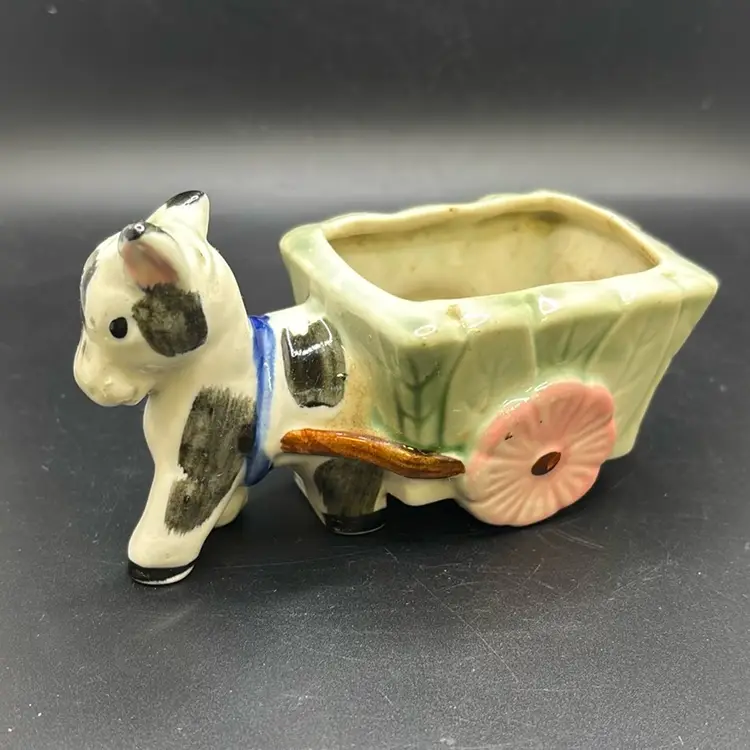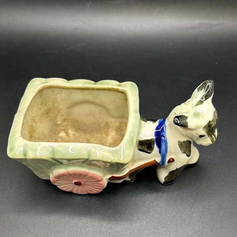 Vintage Donkey Pulling wagon Planter 3ā€ Japan