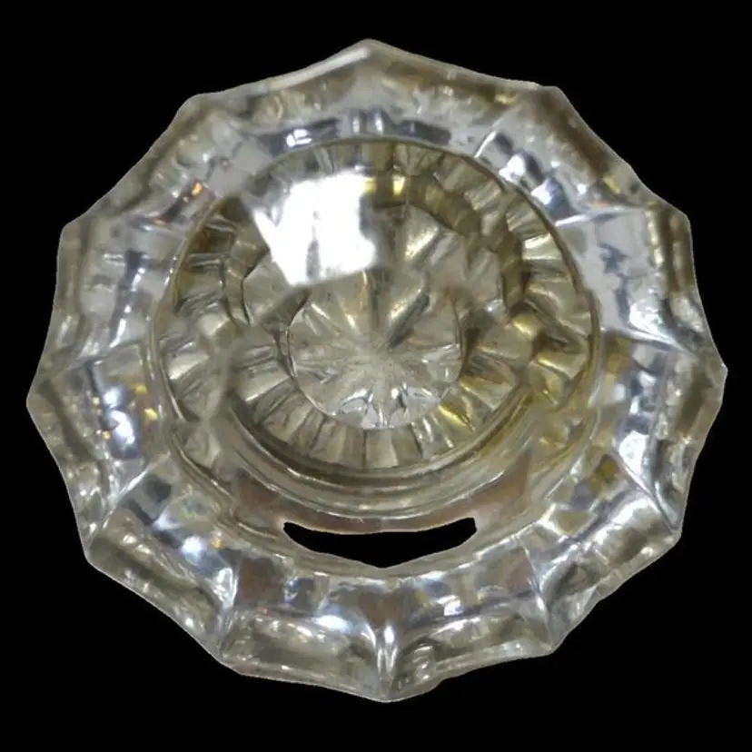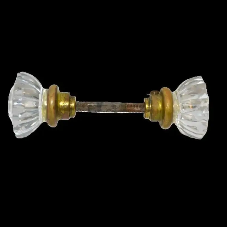 For vintage home decor, this door knob unit has brass fittings and glass knobs.