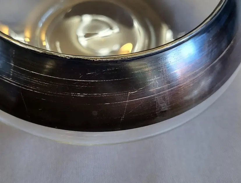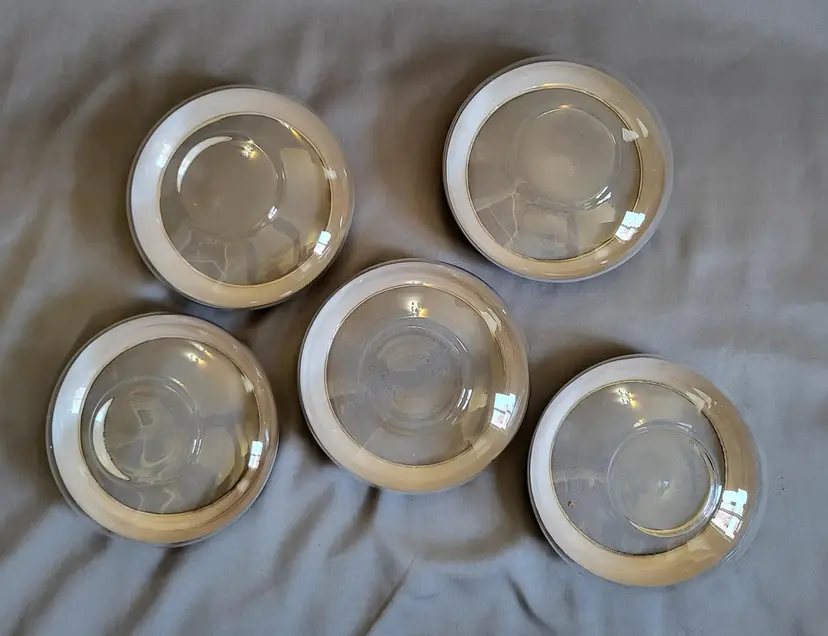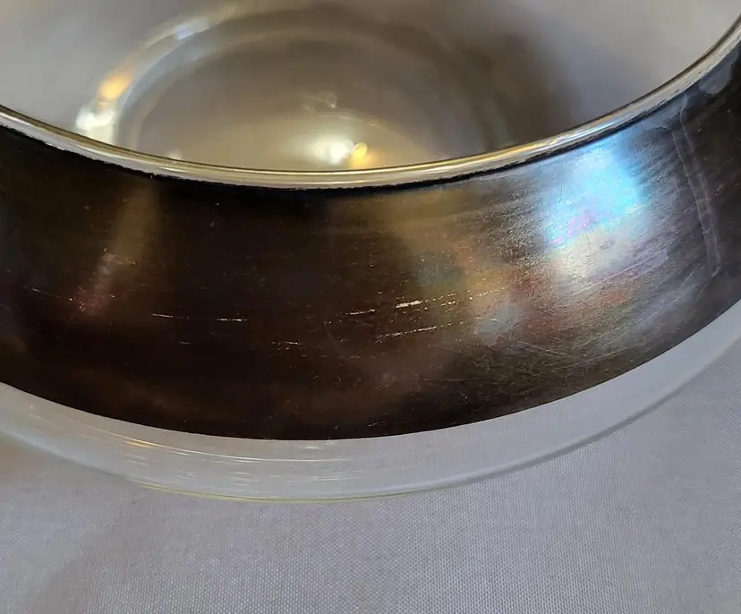 All 6 bowls are in good pre-owned condition. The silver rims are tarnished and there are some spots where the silver has worn off. (Shown in pictues) There are no chips or cracks in any of them.