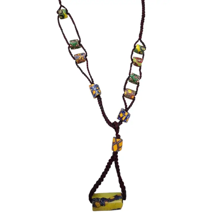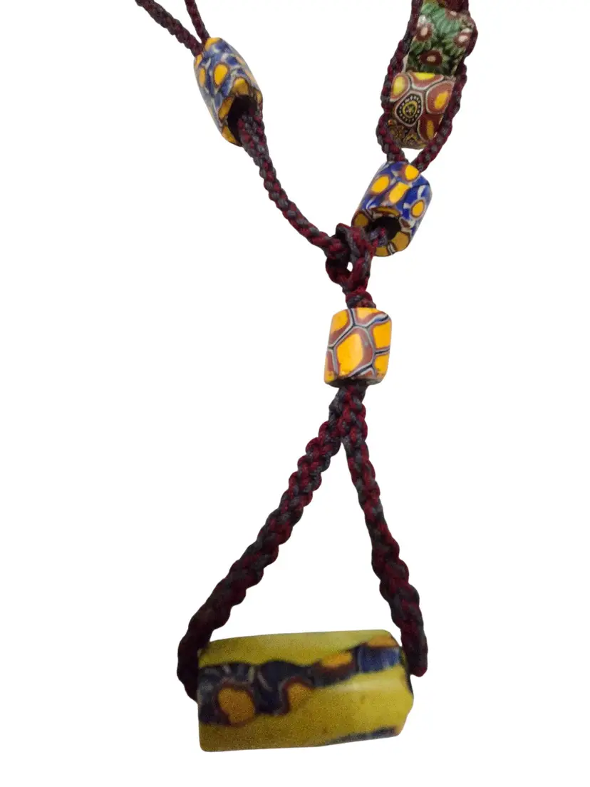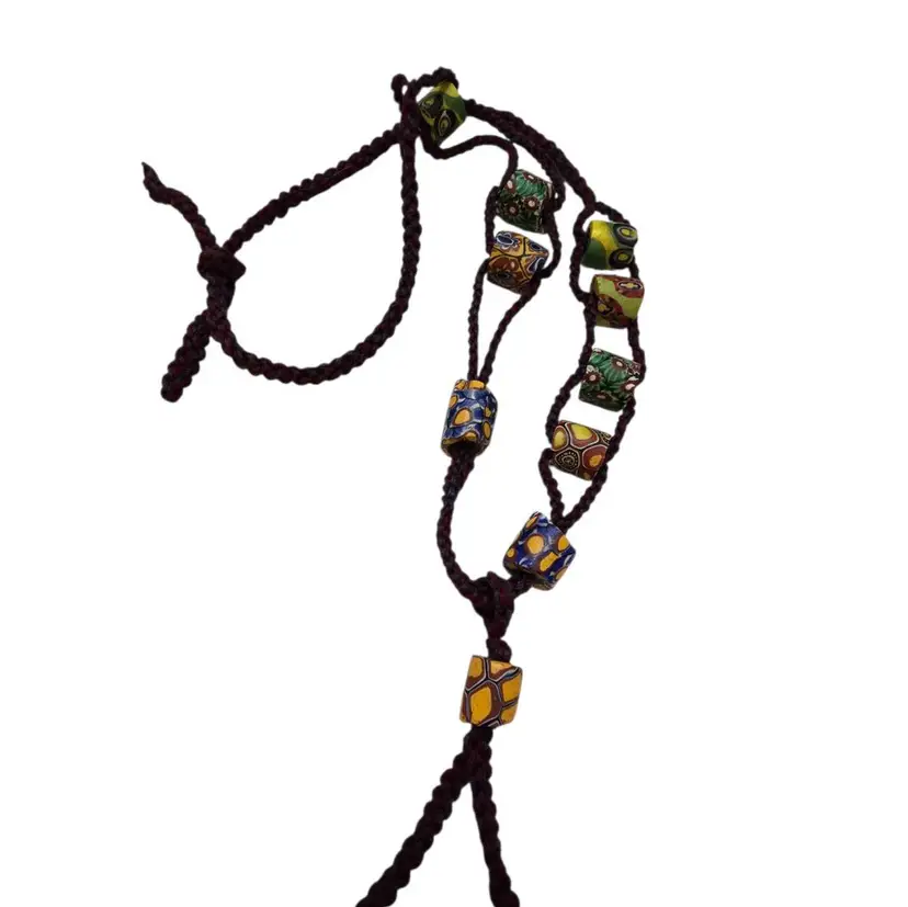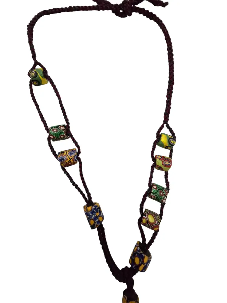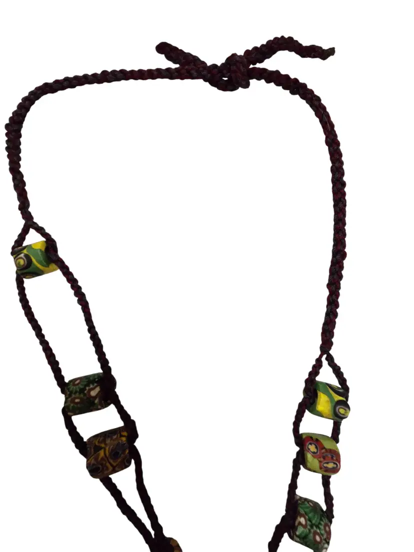 Vintage Double Cord African Clay Slave Beaded Necklace (A9054)