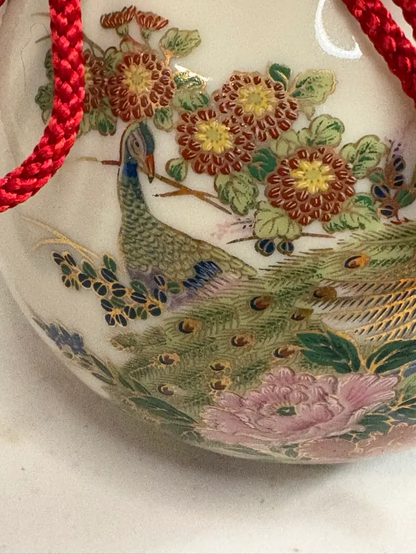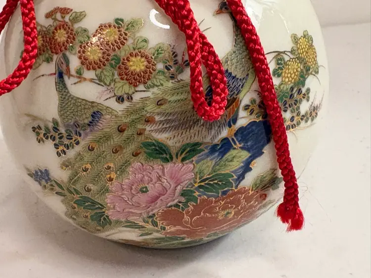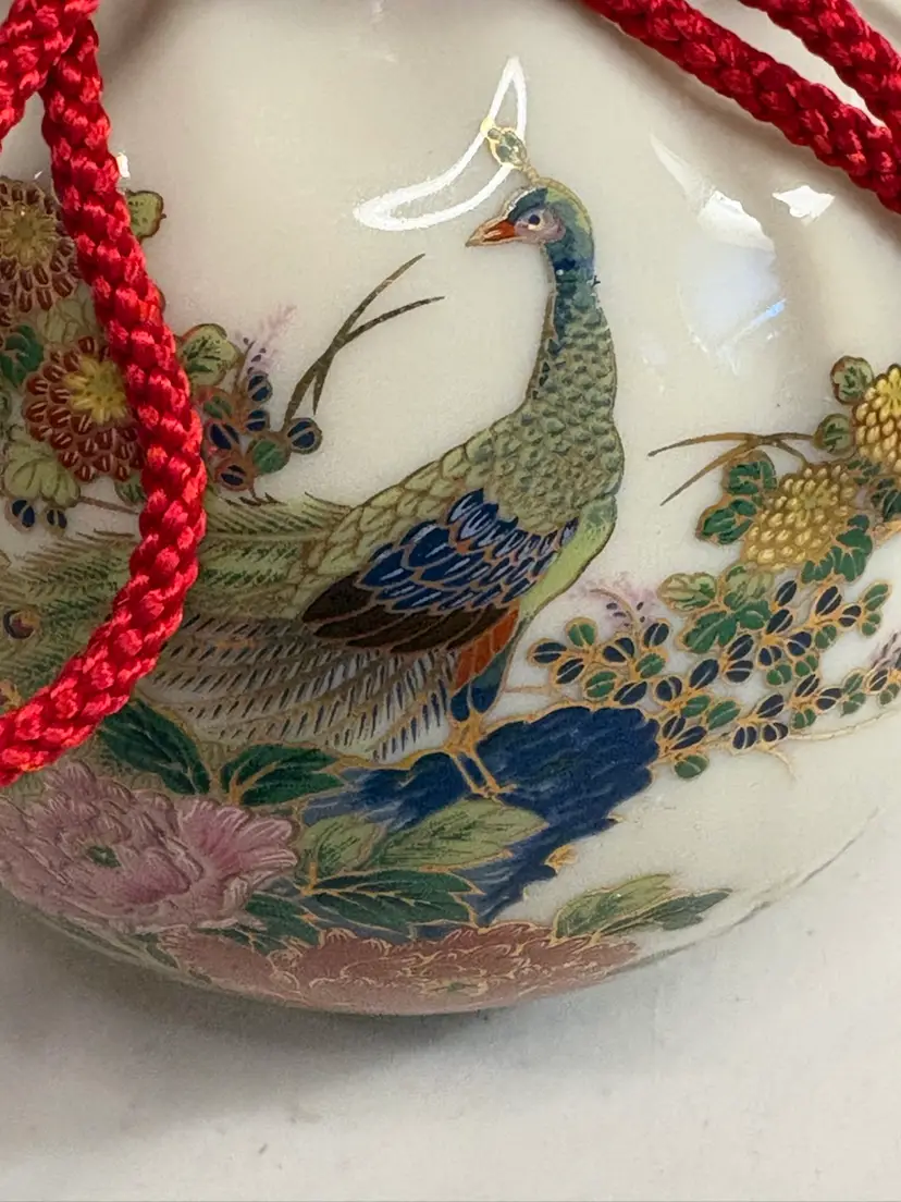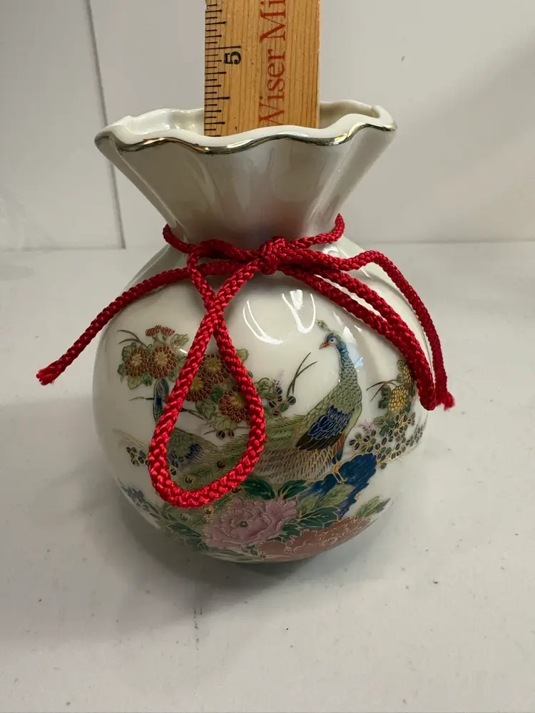 This vintage double peacock vase with a floral design showcases intricate craftsmanship and a touch of Japanese culture. Made in Japan, this 4.5-inch vase features two beautifully detailed peacocks, adding a unique and elegant touch to any space. Perfect for collectors of Japanese art and décor enthusiasts, this piece embodies the traditional elegance and artistry of Japanese design
