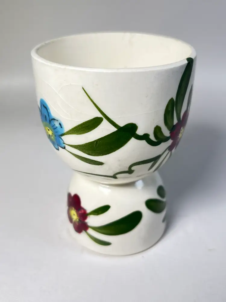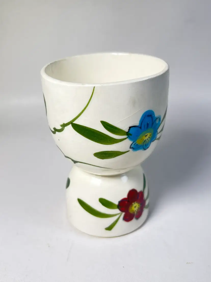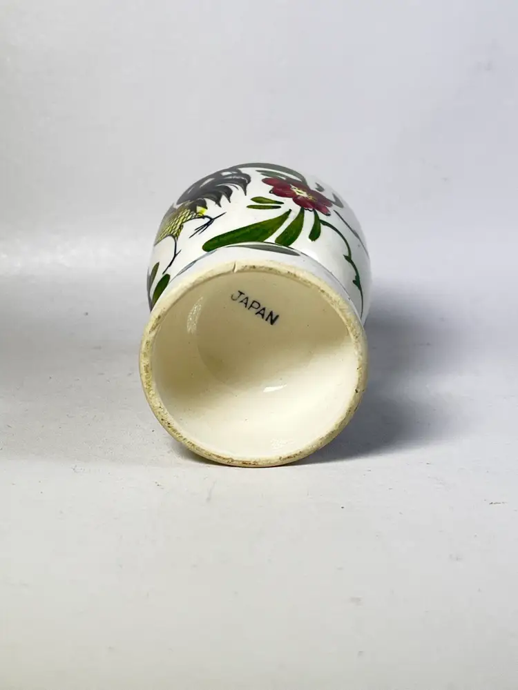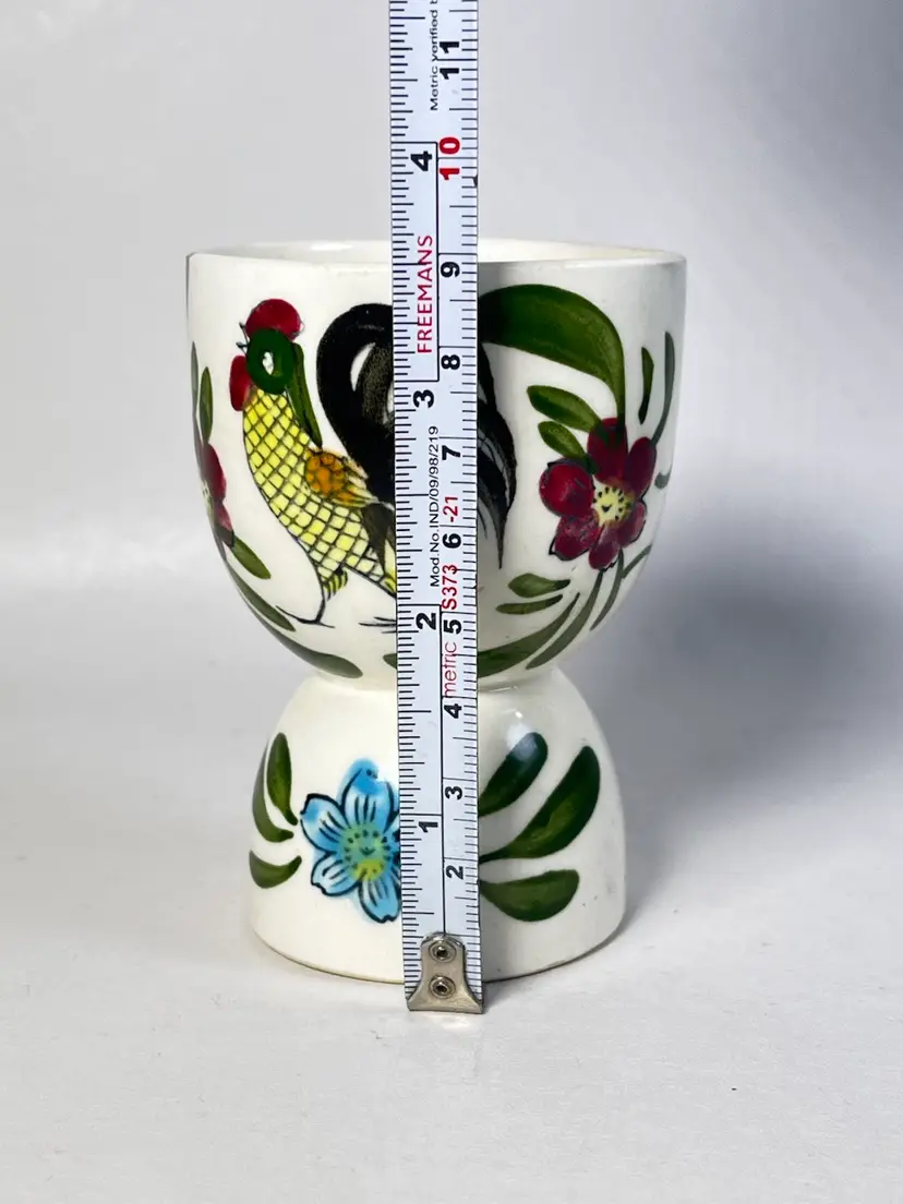 Vintage Double Porcelain Egg Cup- Fancy Feathered Rooster & Flowers