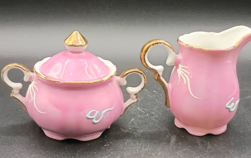Preowned: There maybe some wear to the gold accent and the rim of the Sugar Bowl Lid has some rough spots otherwise these are in great shape.