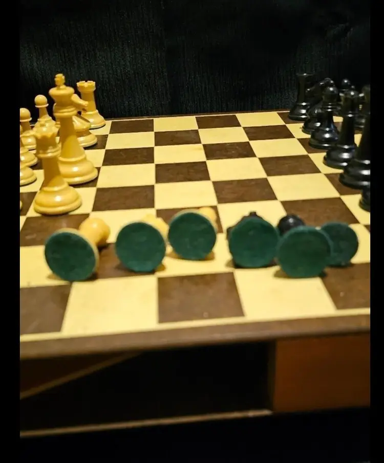 From one of the very best makers of CHESS this set has corner pockets that swivel under the board to store your pieces in. Set is complete King 2½"