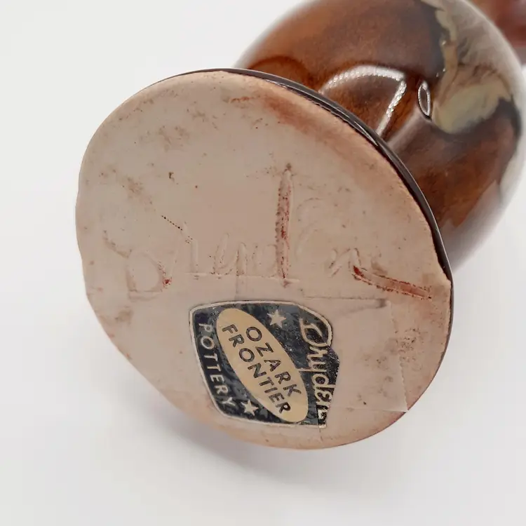 Beautiful colors in this 8" vase. Signed Dryden and has original Ozark Pottery label taped on by previous owner, in great condition.