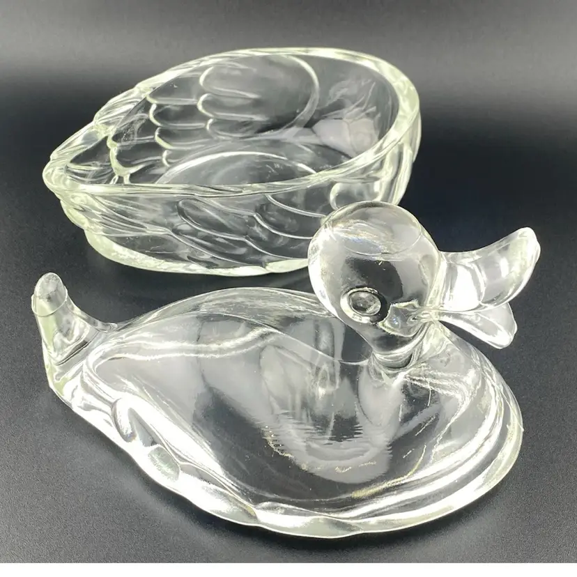 Vintage Duck On Nest Jeanette Glass Sweet Little One Candy Dish Cottage