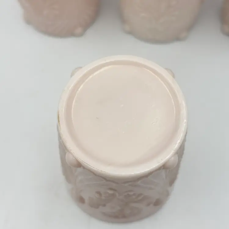 For sale is a Vintage Dugan Inverted Fan And Feather Slag Custard Rose Opalescent Pink Glass Tumbler 6pcs