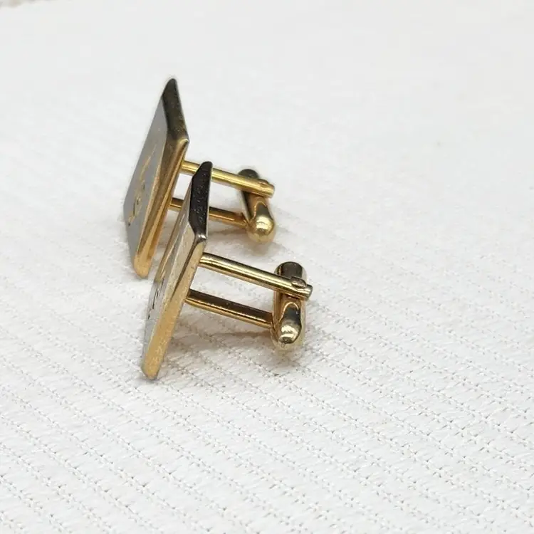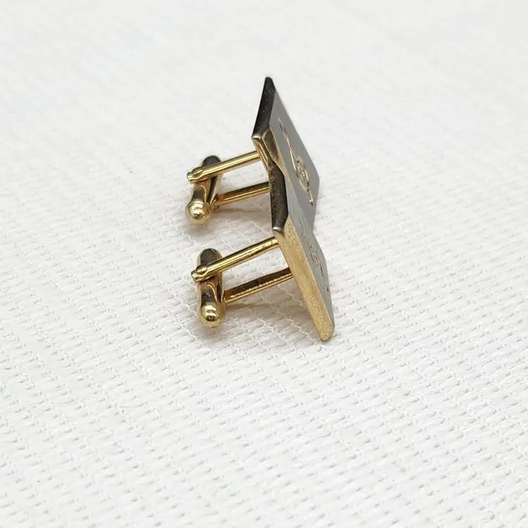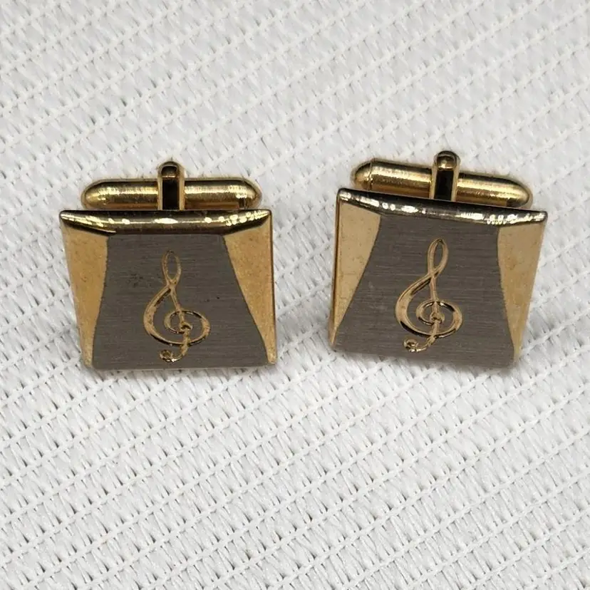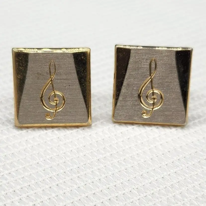 Elegant square cufflinks featuring a gold treble clef design on a silver-tone background. Perfect for music lovers. No visible damage.