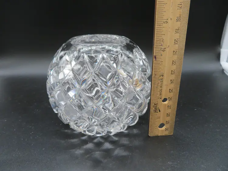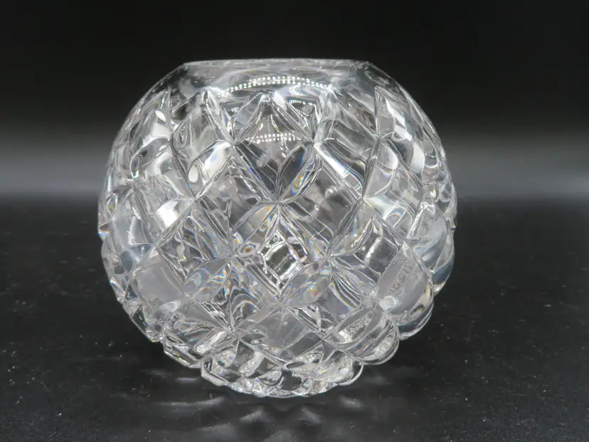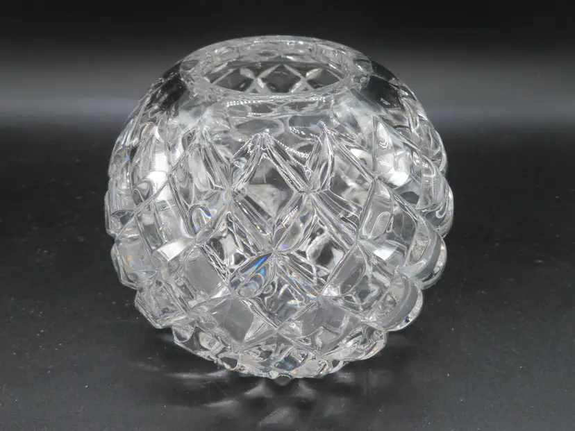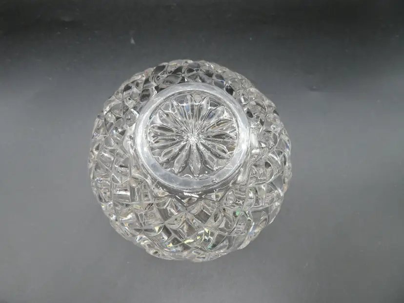 Item Description: For your consideration is a beautiful vintage EAP Glass rose bowl vase featuring an intricate diamond cut pattern. This elegant piece adds a touch of classic charm to any room and is perfect for displaying your favorite flowers. The vase is in excellent condition with no chips or cracks. Please review all photos for condition. Dimensions: Please refer to photos for size details. The vase is 4.5" tall and has a 4.75" dia. Shipping: I ship daily, all items are securely packaged in foam & bubble wrap to protect your investment. Thank you for viewing my item, please check out my other listings!