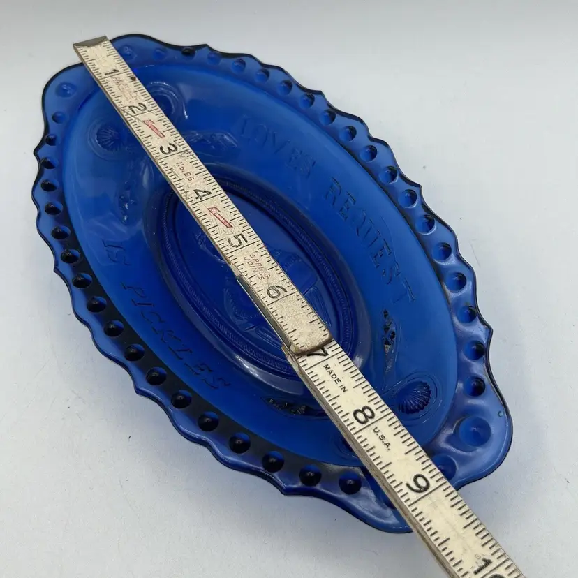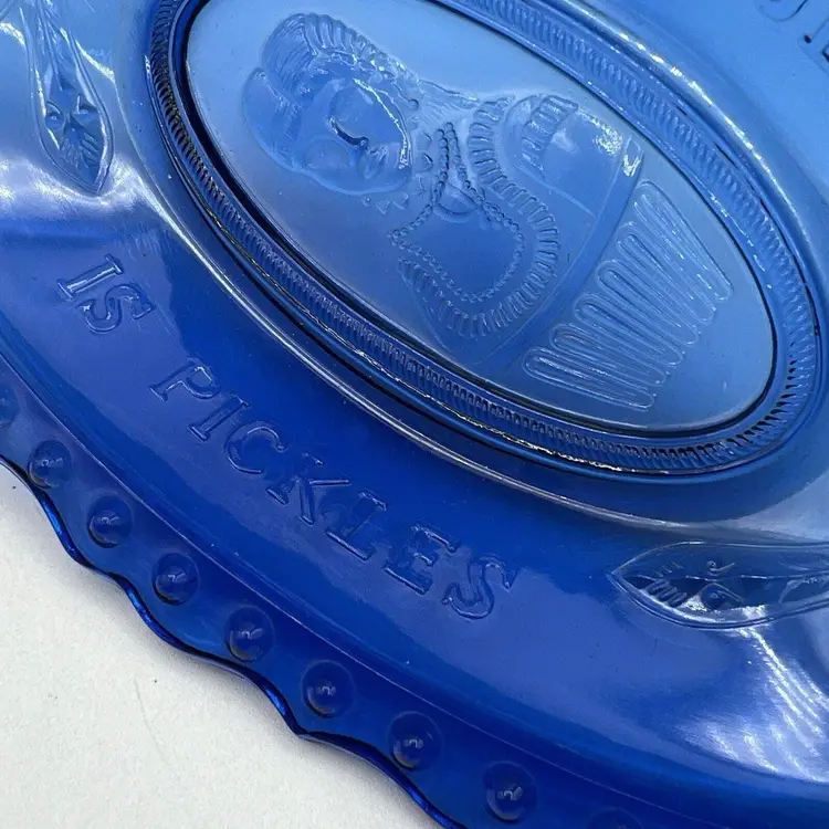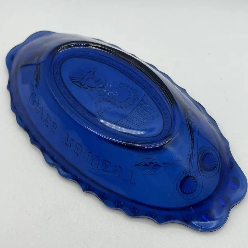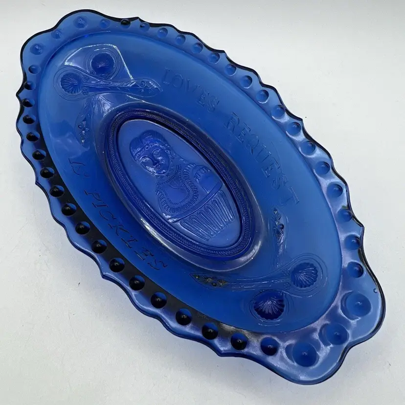 Vintage EAPG Imperial Glass Oval Loves Request is Pickles Dish Cobalt Blue 9" Pickle Tray Relish Server