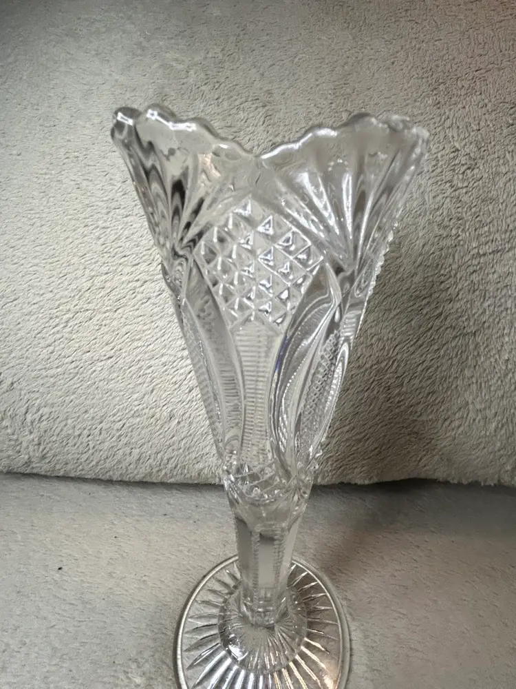 this is a vintage McKee Glass vase in the Jubilee or Hickman pattern.