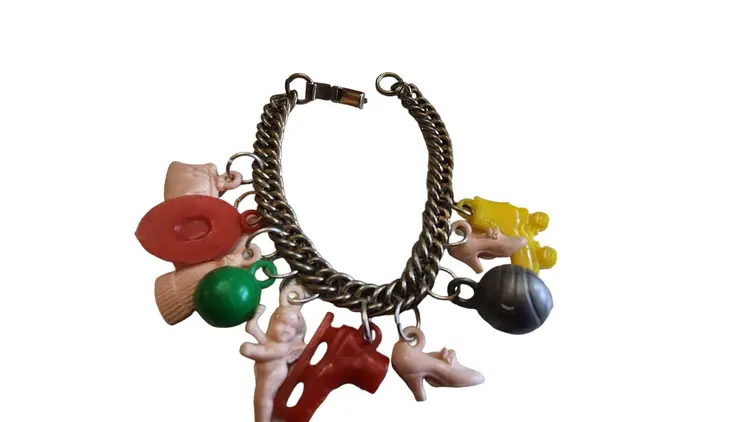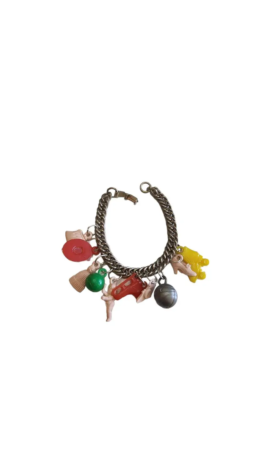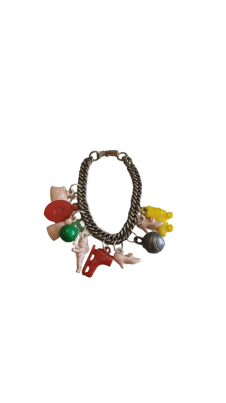 Vintage Early Plastic Charm Bracelet (A830)