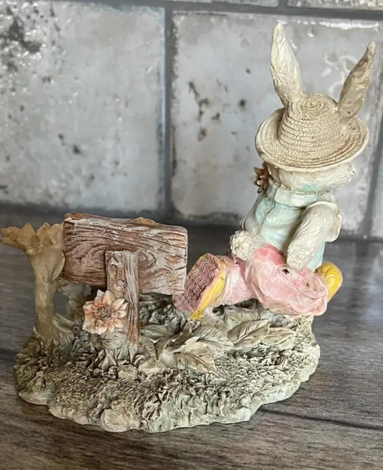 A darling Vintage Bunny Figure. Possibly a Nantucket. Approximately 4 inches tall, 5 inches wide and 3 1/2 inches deep. I believe he is a resin.