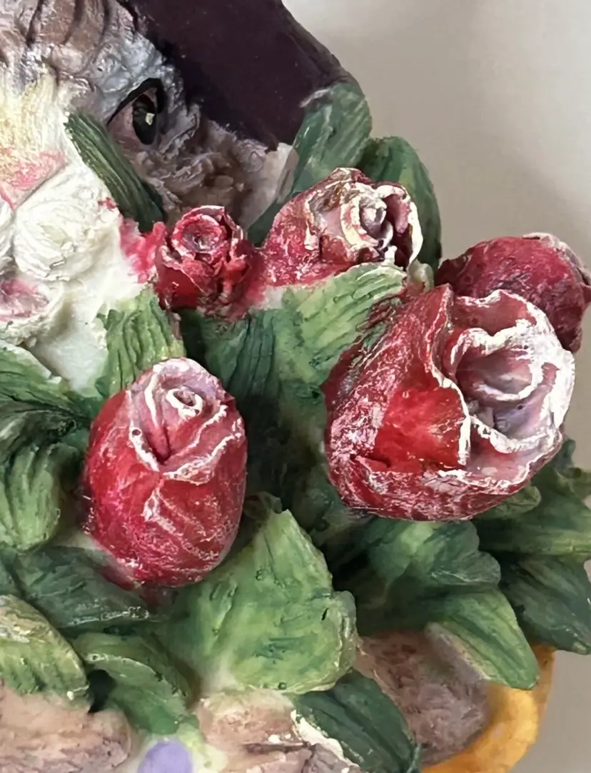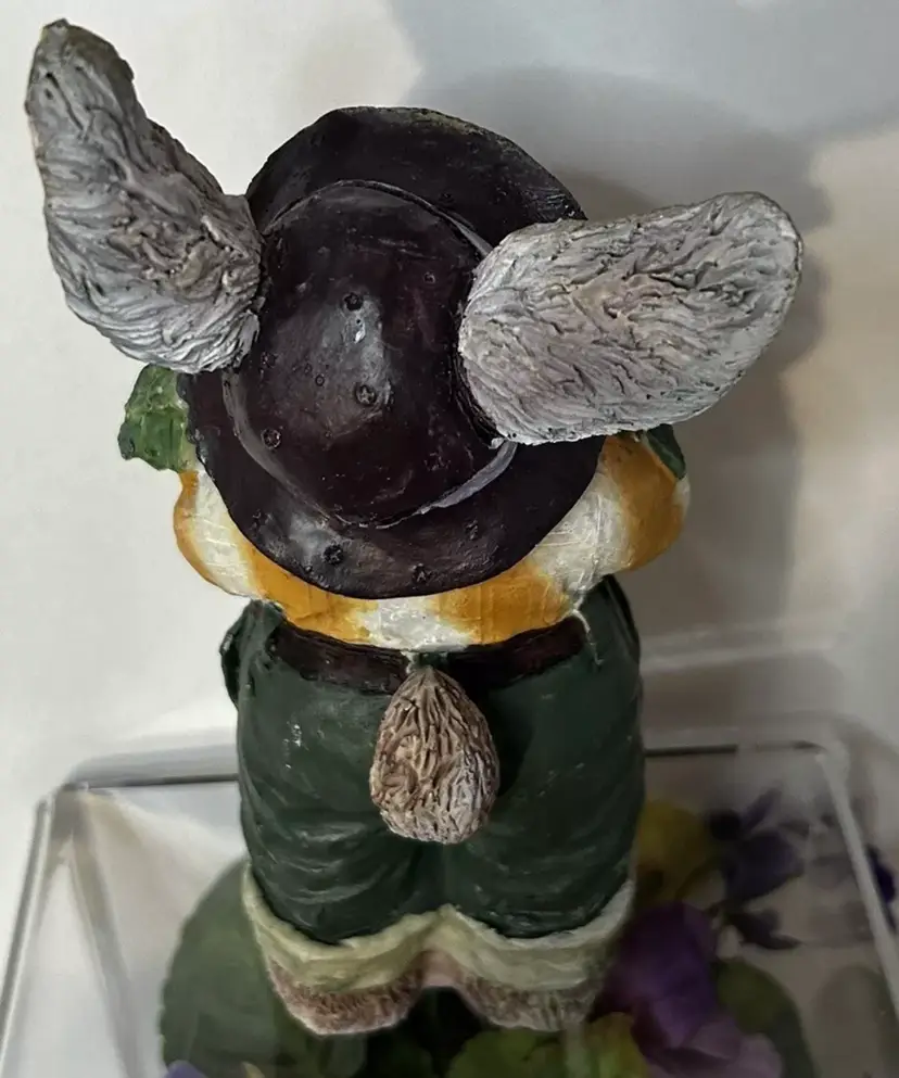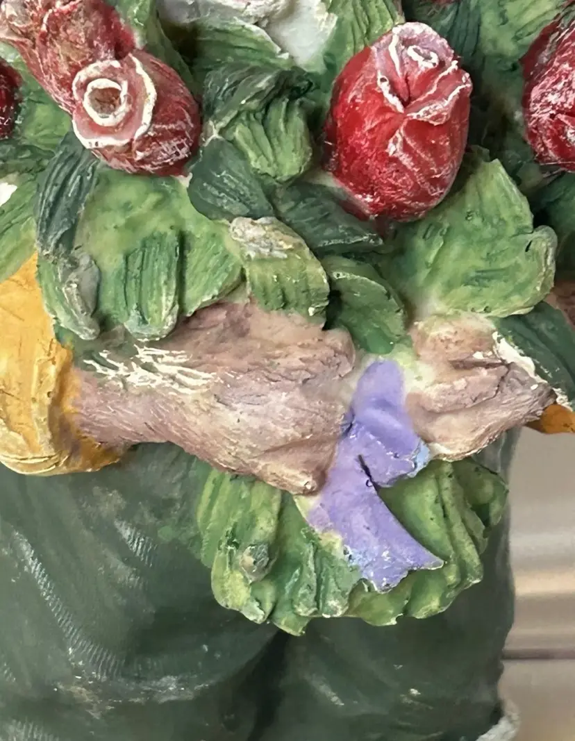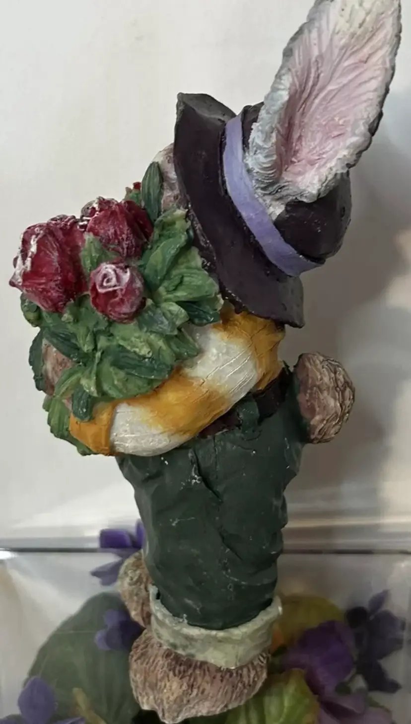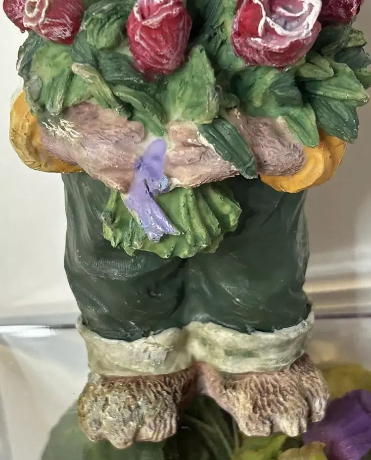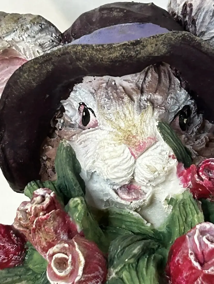 This vintage brown bunny sporting overalls and a hat holding a wonderful bouquet of red roses stands 8.5" tall and is made of durable resin. This adorable brown bunny is ready to work either in your home or garden to add whimsical charm to your Spring or Easter decor. The intricate details and craftsmanship of this piece is sure to impress any bunny lovers. Crafted with high quality resin, this figurine is not only durable but also beautifully designed. Vintage Brown Bunny In Overalls & Hat w-Bouquet Roses 8.5" Tall Resin Figurine is in excellent vintage preowned condition, with NO chips, cracks or repairs. Please review all pictures for proper assessment of its vintage preowned condition.