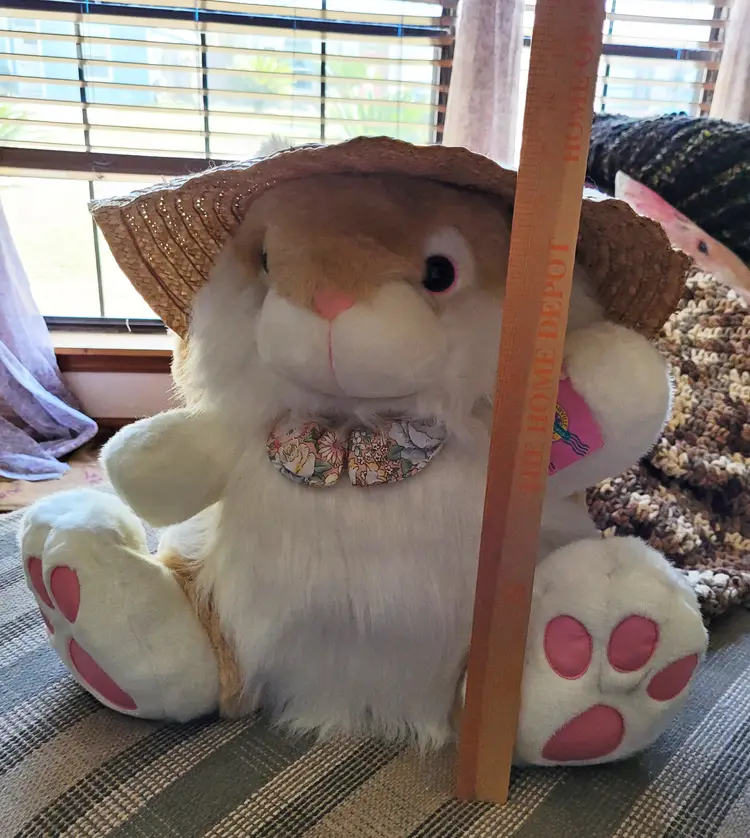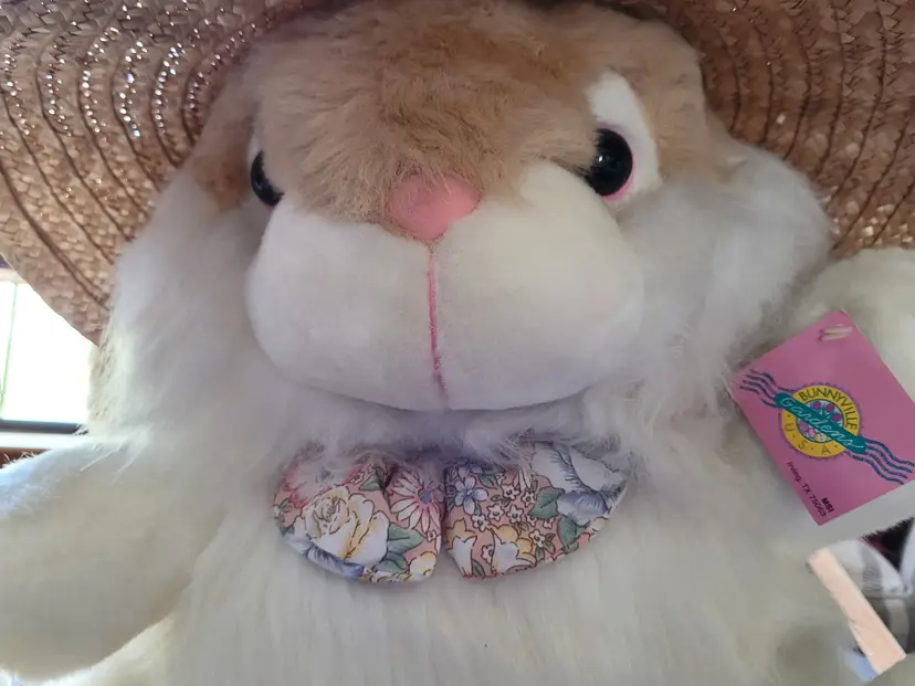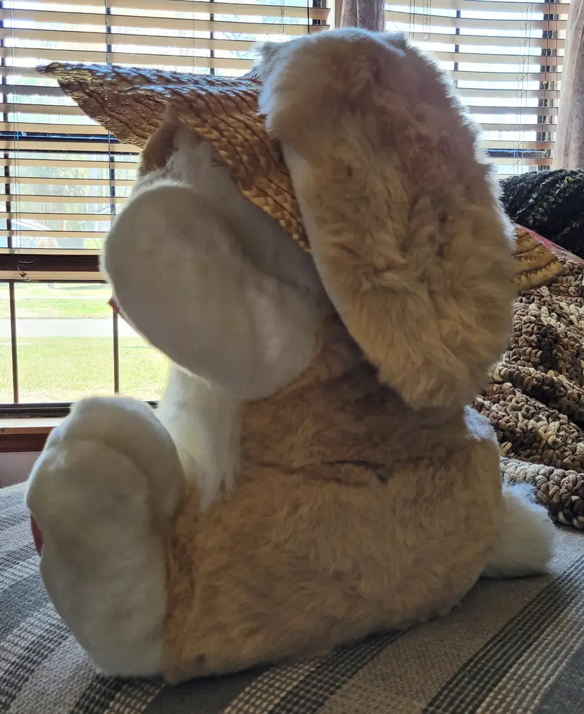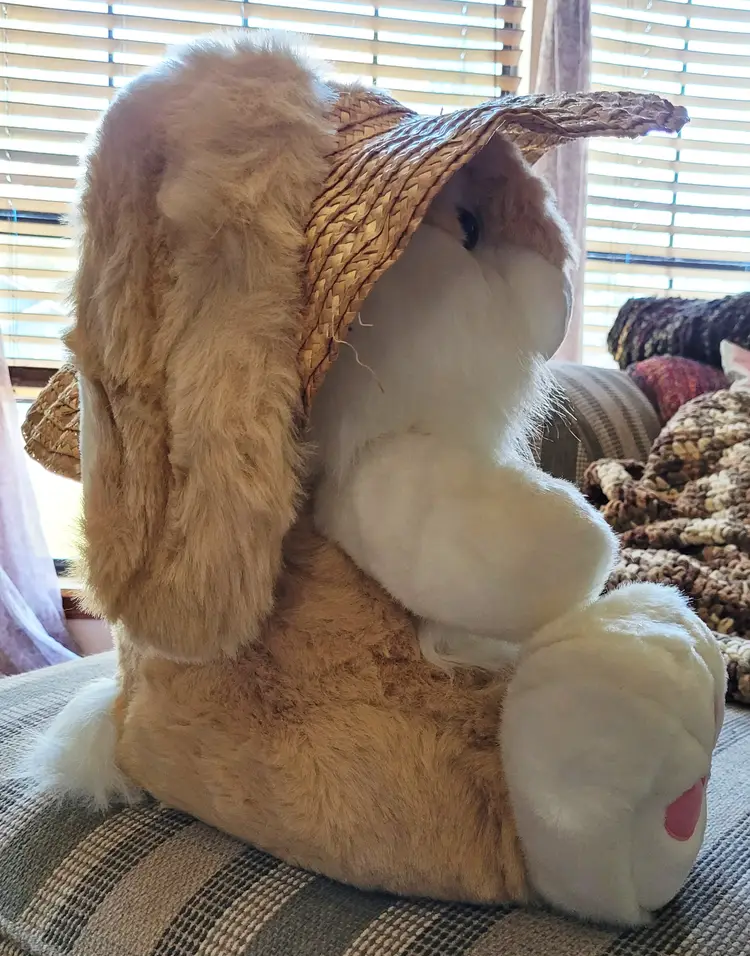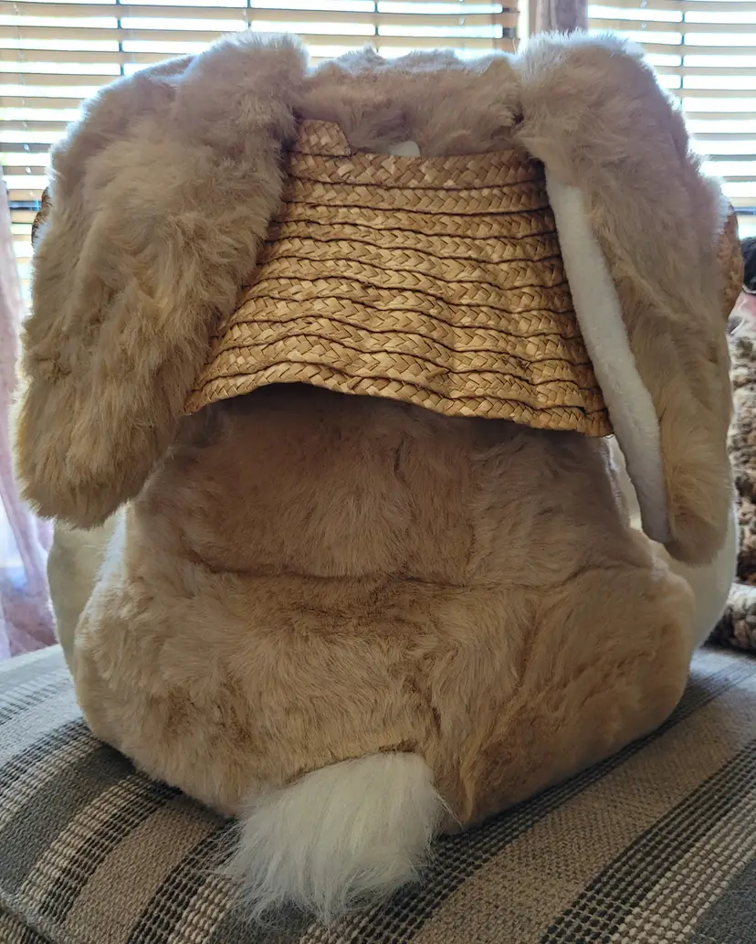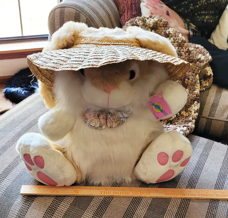 I added the straw hat years ago. Yes, he is large and hefty. Michaels Stores Inc. Bunnyville Gardens U.S.A. Dandee International Limited Soft Expressions. Made in China. From a smoke free home, please refer to the pictures for its condition and size. Approx: 20x16x13