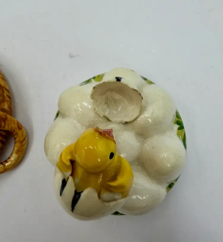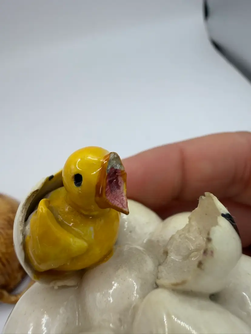 See photos for condition 3"W hairline crack only on inside of bowl crack on beak