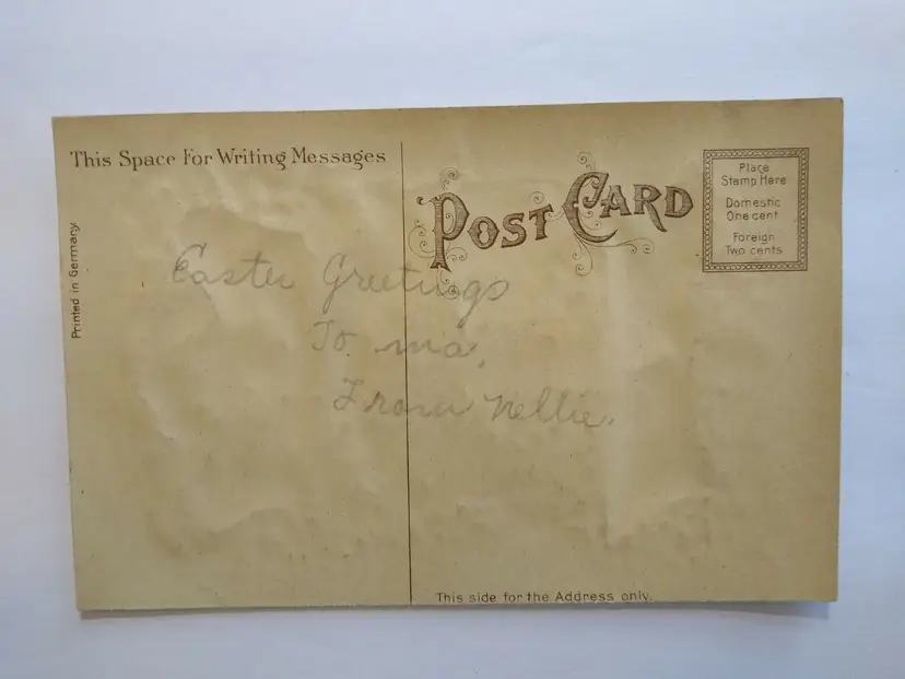 Theme: Art, Fantasy, Holiday, Greetings Unit of Sale: Single Unit Era: Pre-War (Pre-1914) Original/Licensed Reprint: Original Occasion: Easter Postage Condition: Yes Features: Embossed, Divided Back Subject: Artist Material: Paper Time Period Manufactured: 1900-1919 Type: Printed (Lithograph) Artist: Unknown Custom Bundle: No Size: Standard (5.5 x 3.5 in) Country/Region of Manufacture: Unknown Brand/Publisher: Unknown Number of Items in Set: 1 Year Manufactured: 1911