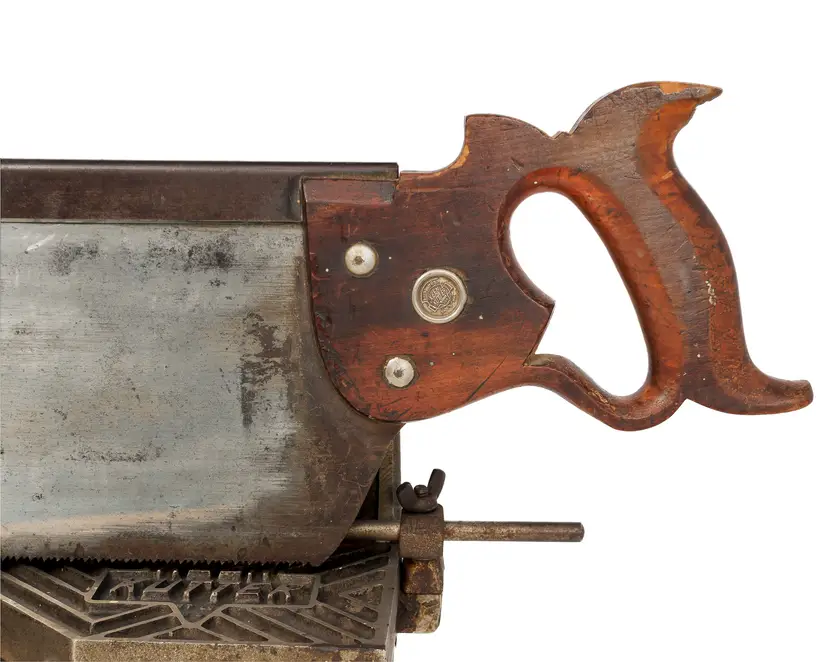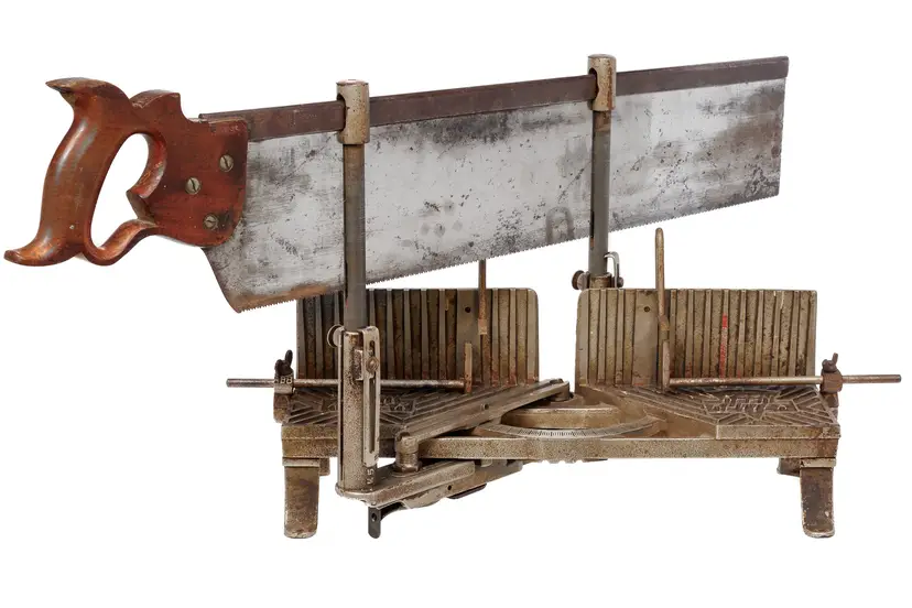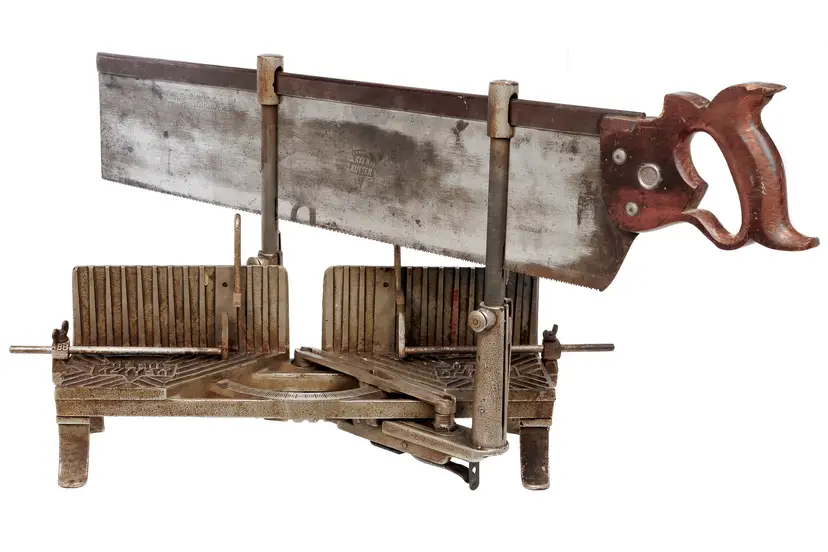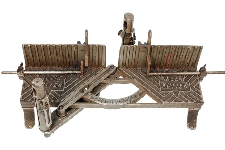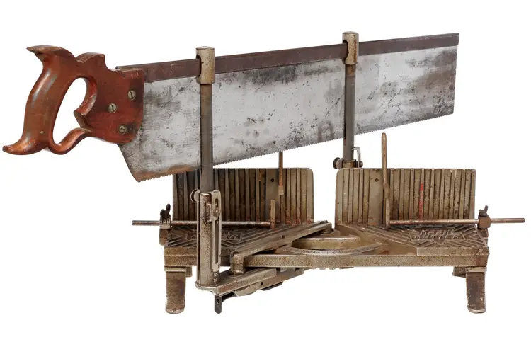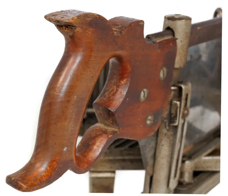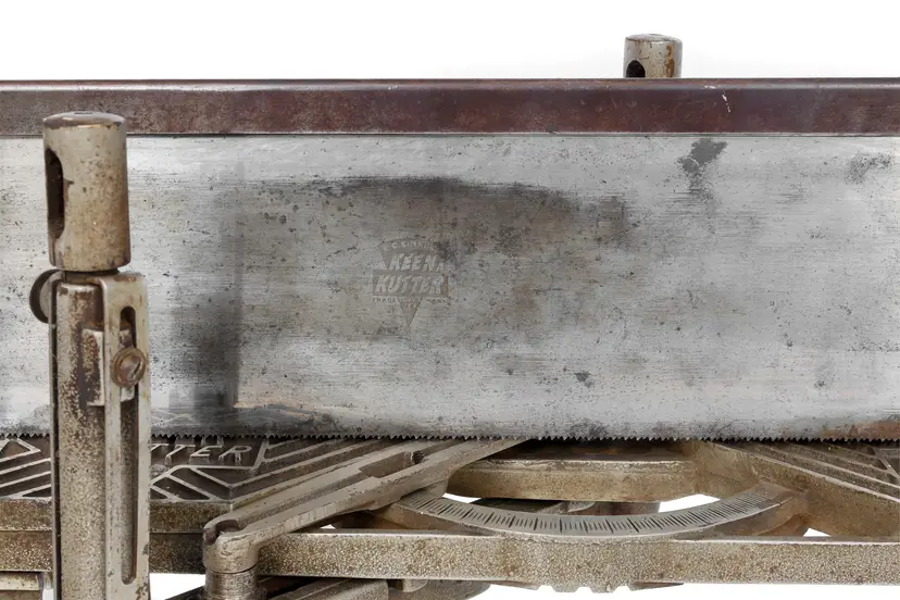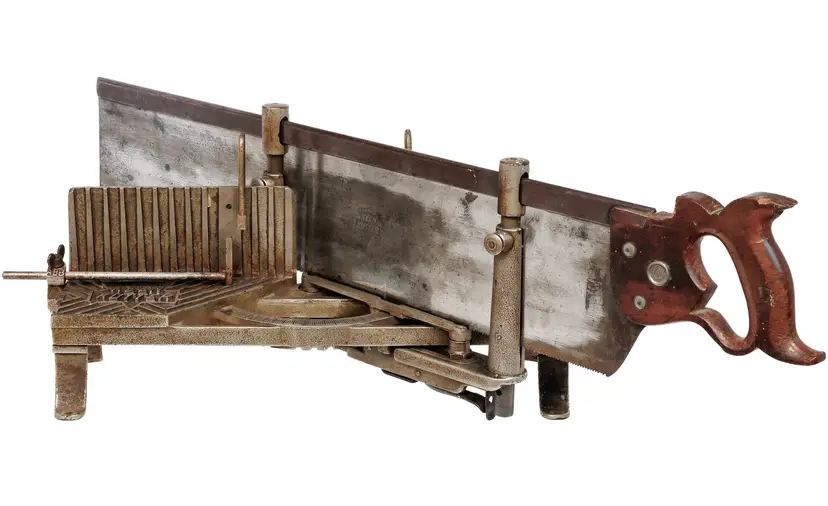 The only complete Keen Kutter mitre box of this vintage we have ever had the pleasure of selling. It has 2 length stops and both hold-downs and it works perfectly. The saw is straight with a nice etch and sharp enough to use - although you may need to sharpen it if you plan to use it often.
