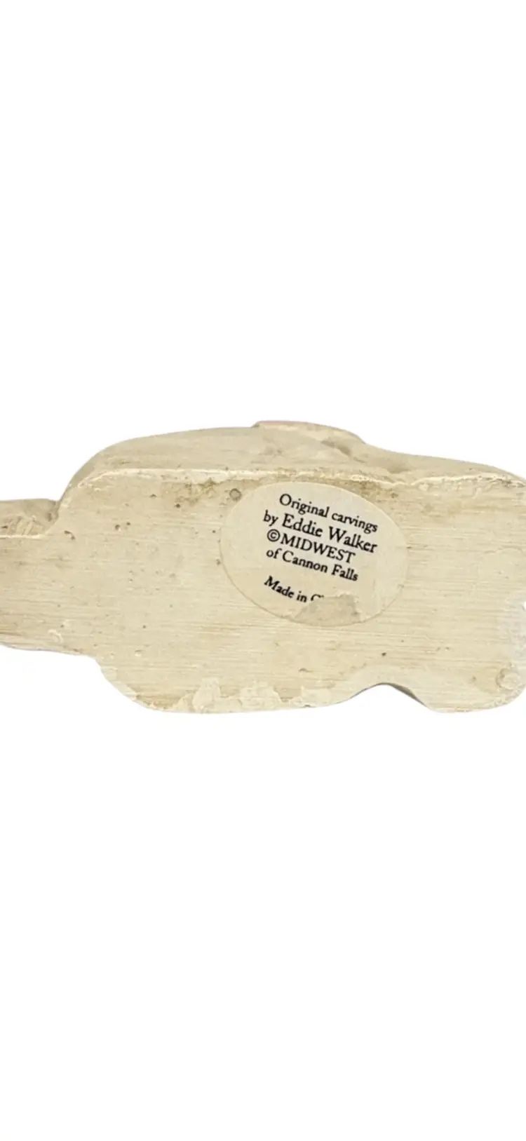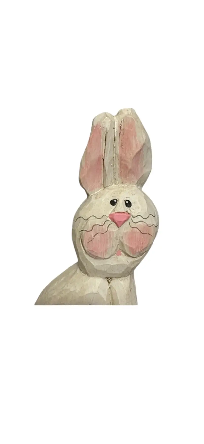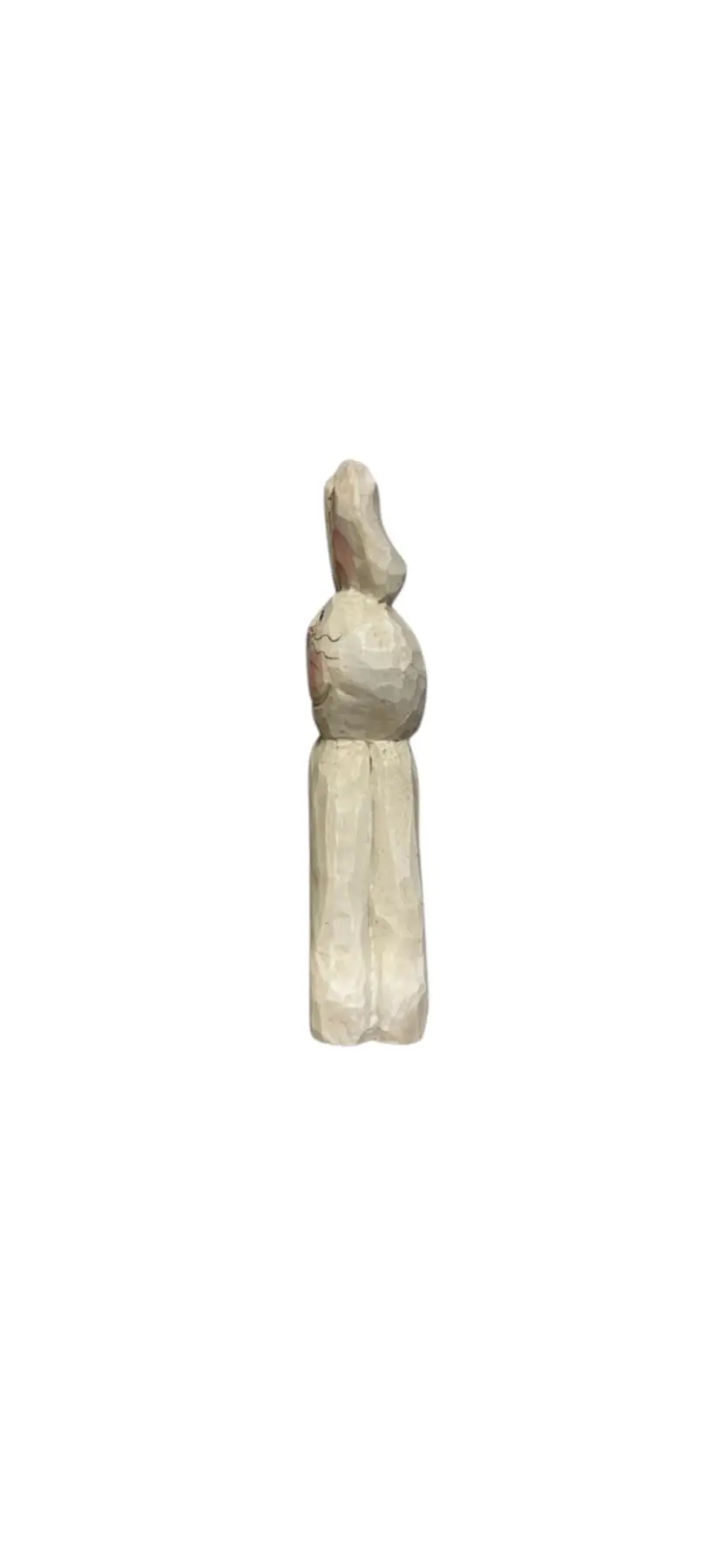 Vintage Eddie Walker Rabbit Figurine Wood Distressed White Finish Hand painted 6.5”H x 3”W x 1.25”D Original bottom sticker with a corner torn