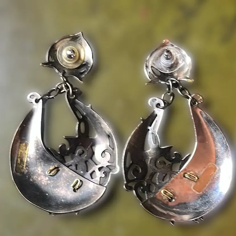 Vintage Edgar Berebi Enamel Red Black Silver Dangle Earrings 3”L