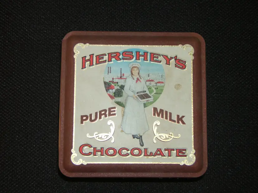 This vintage Hershey's Pure Milk Chocolate collectible tin is a must-have for any collector or enthusiast. The tin features a beautiful girl on the front and is made with high-quality metal. The brown color and intricate design make it a great addition to any collection. This tin was created in 1992 and is a perfect example of vintage advertising. It is a great addition to any collection of merchandise and memorabilia. The Hershey's brand is well-known and loved, and this tin is a great way to showcase that love.