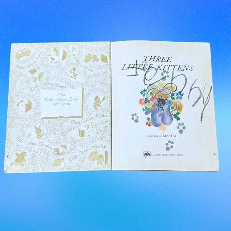 Approx 7” x 6”; illustrated by Masha; fair vintage condition (has tears to last two pages, name in crayon on title page, damage to spine).