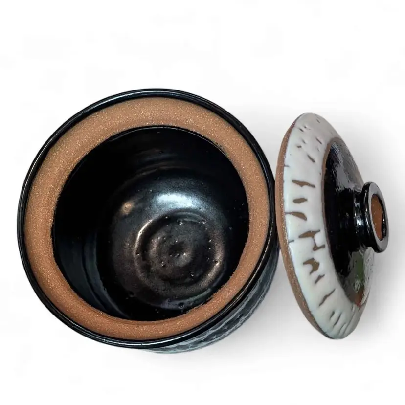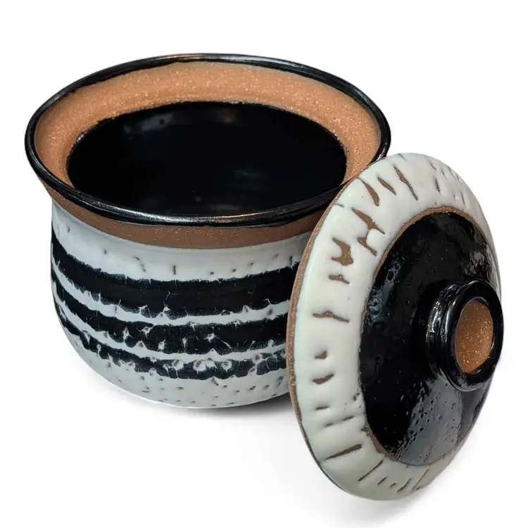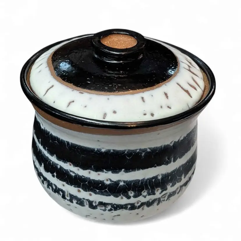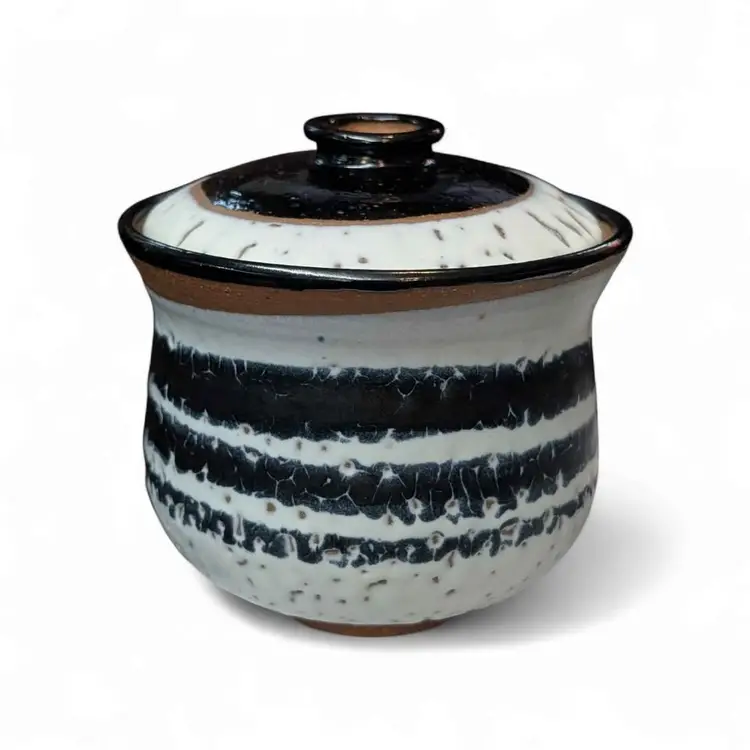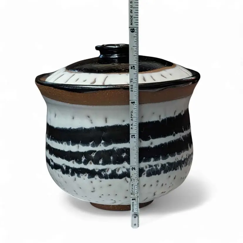 Vintage Edna Arnow Mid-Century Studio Pottery stoneware Lidded Crock Canister Signed. This is a gorgeous piece of Edna Arnow Pottery - the glaze colors and patterns are so unique and would compliment any decor or space. It is in excellent condition free of any imperfections and is signed "Arnow" on the bottom - there is also a name written in sharpie on the bottom that doesn't belong. Measurements are in the photos.