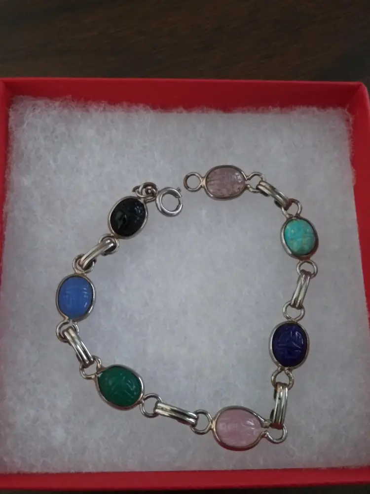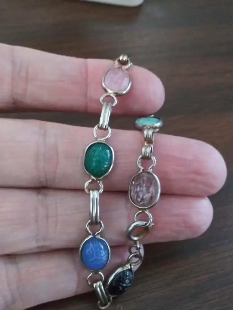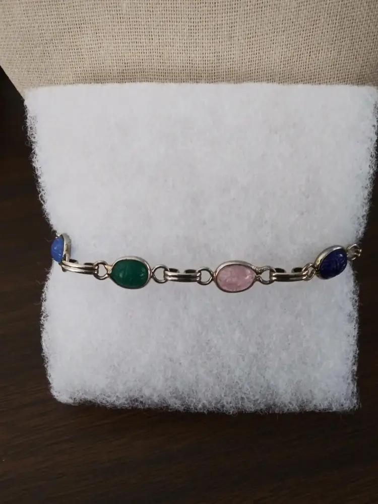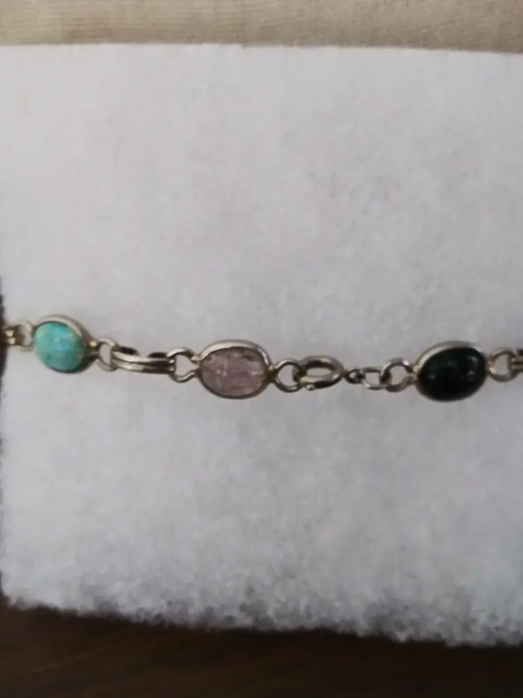 This bracelet is all natural stones, agate, rose quartz, lapis etc... 7 in total.